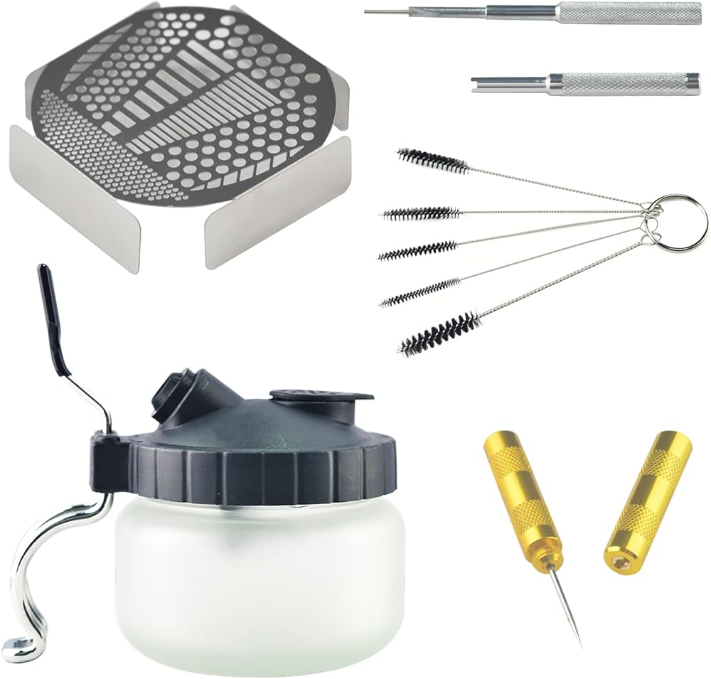 1.Cleaning brushes:Used for cleaning the airbrush paint cup and the flow path between the cup and the nozzle.