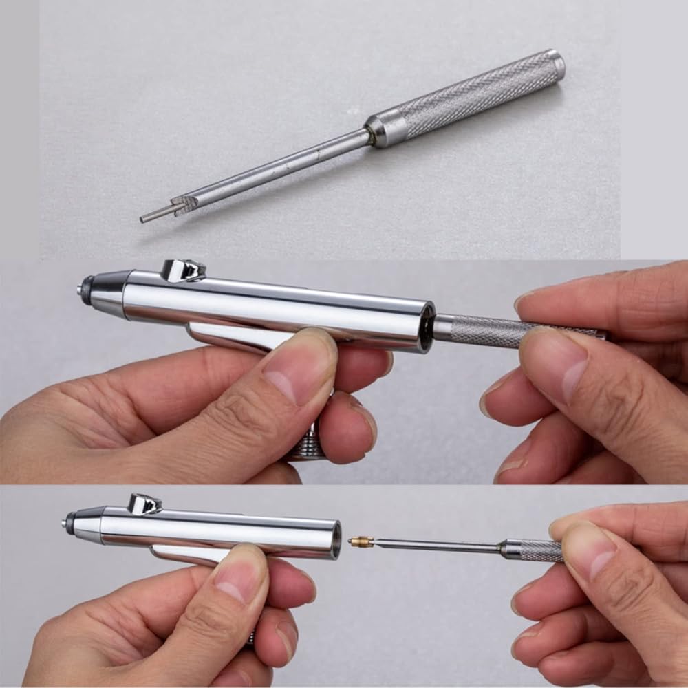 4.Airbrush repairing tool:not only has the function of removing broken nozzle and removing stubborn paint stain, the unique structure of the tail can also realize the quick disassembly and assembly of normal nozzle.