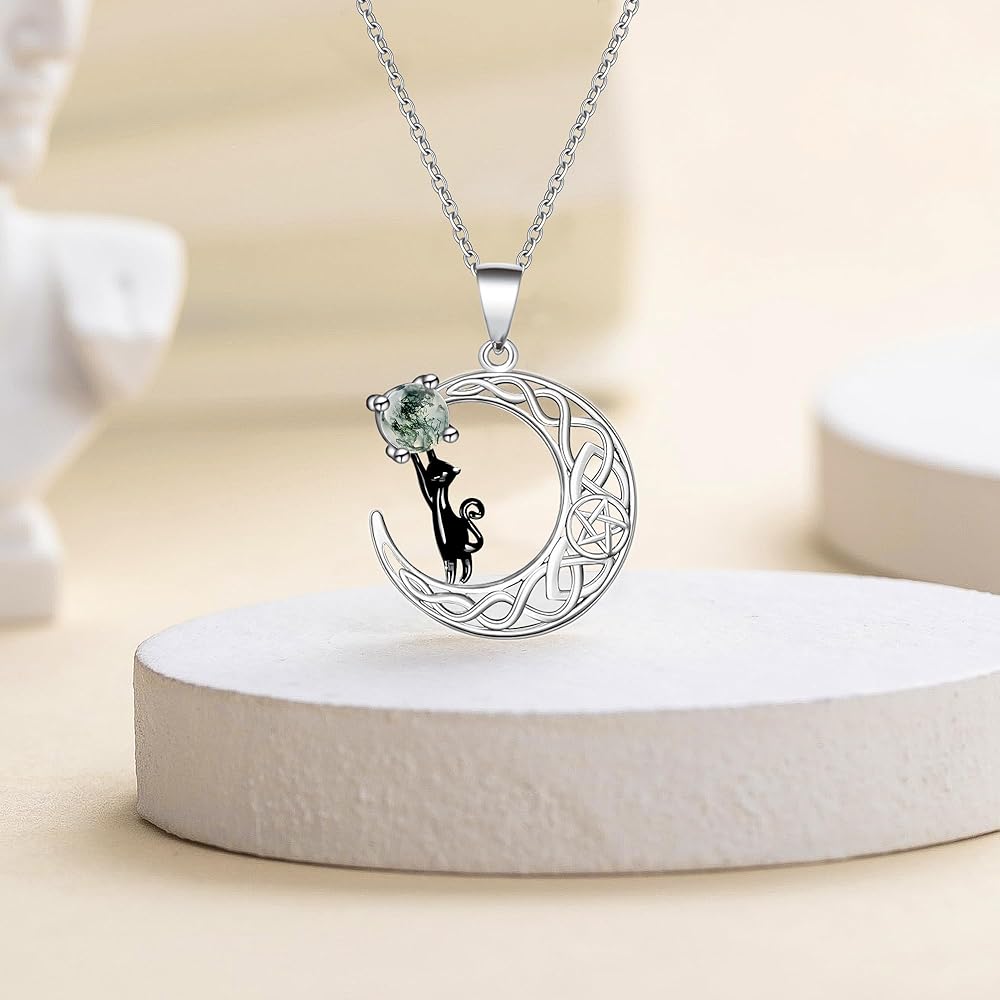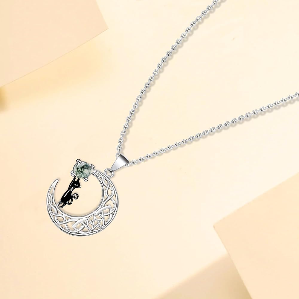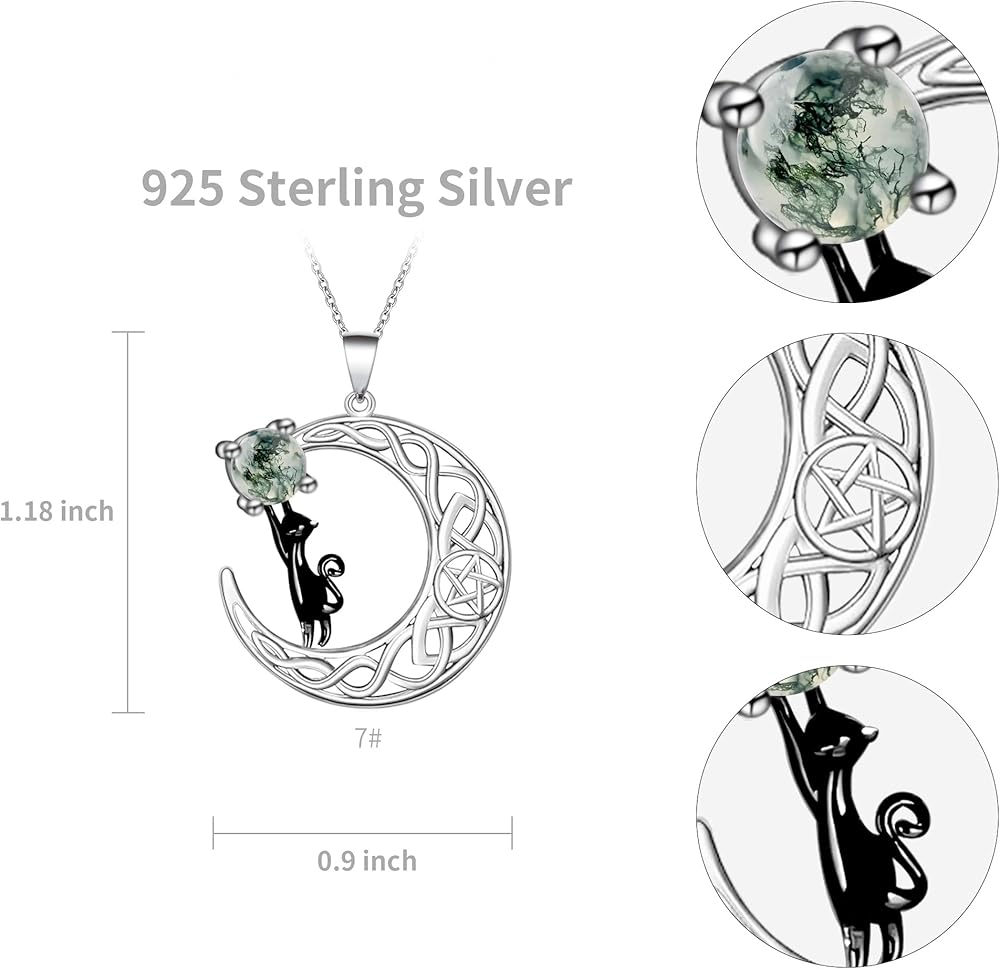 ❤الخامة: مصنوعة من الفضة الإسترلينية S925 والعقيق الطحلب الطبيعي، بدون أي عناصر مسببة للحساسية، مريحة في الارتداء. يمكنك إرسال هذه المجوهرات كقلادة للقطط للنساء.