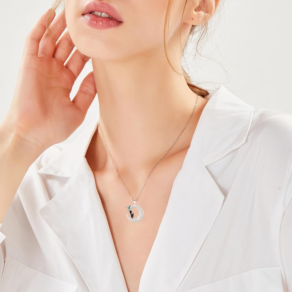 ❤التصميم: تحتوي قلادة القطط هذه على قطة سوداء تقف على القمر وتلعب بالعقيق مع مخالبها. تمثل القطط السوداء الحماية، ويمكن إرسال مجوهرات القطط هذه للنساء إلى أحبائك كتمائم.