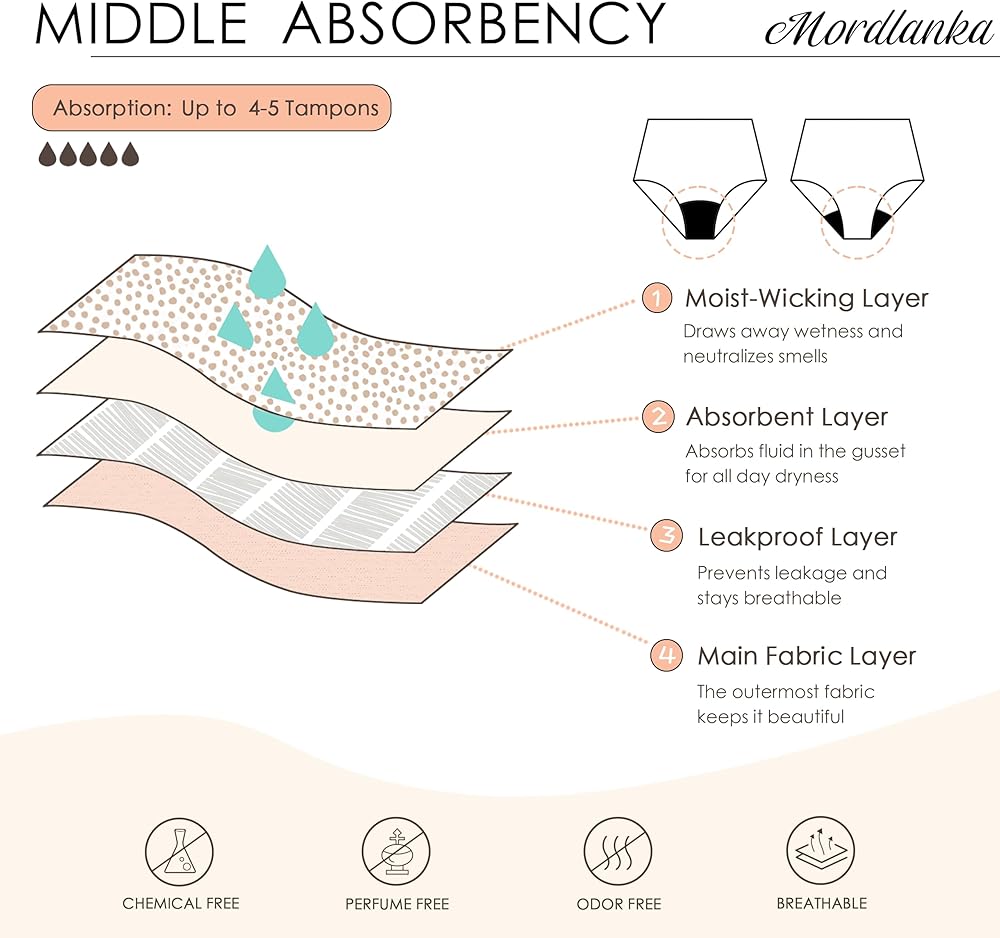 لا حاجة إلى سدادة قطنية: تحتوي الأجزاء السفلية لملابس السباحة من موردلانكا على بطانة ماصة مدمجة توفر حماية تعادل ما يصل إلى 2-3 سدادات قطنية، مما يلغي الحاجة إلى منتجات الحيض الإضافية.