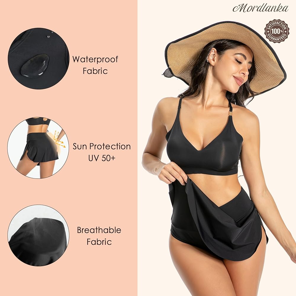 تصميم 2 في 1: تصميم الشق الجانبي يجعلك أكثر سحرًا على الشاطئ. يجمع بين أجزاء بيكيني السباحة المدمجة وحاشية التنورة الأنيقة لخلق مظهر عصري.
