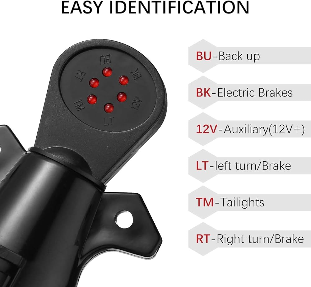 جهاز اختبار أسلاك المقطورة من Miady، جهاز اختبار دائرة وصلة شفرة RV ذو 7 دبابيس شديدة التحمل، جهاز اختبار أسلاك وصلة المقطورة مع مؤشر LED