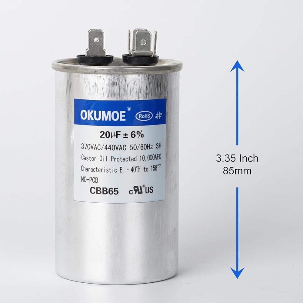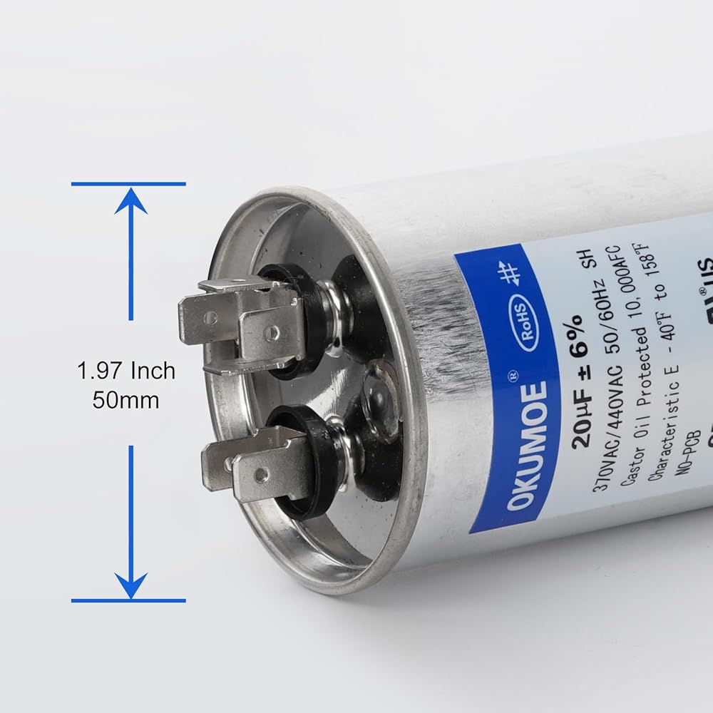 20 فائق التوهج 20MFD 370 فولت/440 فولت CBB65 مكثف تيار متردد مزدوج التشغيل لبدء تشغيل محرك التيار المتردد، بدء تشغيل المروحة، مضخة حرارية، مكثف مستقيم بارد