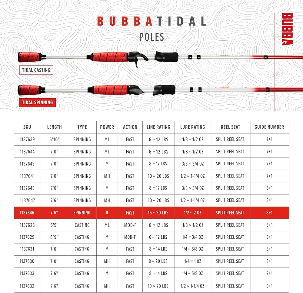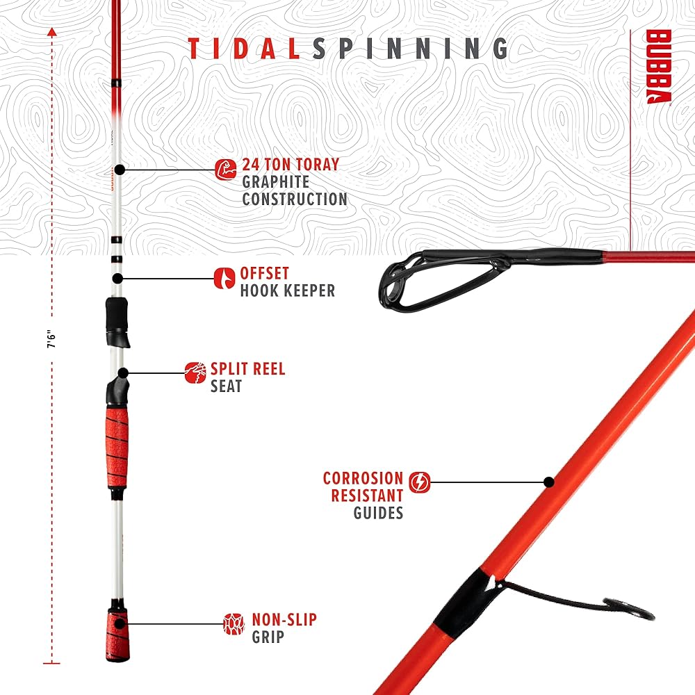 قضيب دوار BUBBA Tidal 7 بوصات ثقيل متوسط الوزن وسريع على الشاطئ مع أدلة مقاومة للتآكل وللمياه المالحة.