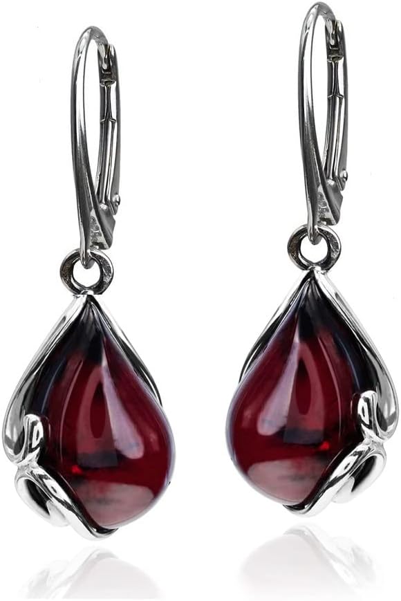 الكرز العنبر Leverback الفضة الاسترليني مجموعة أقراط قلادة Necklace18 بوصة