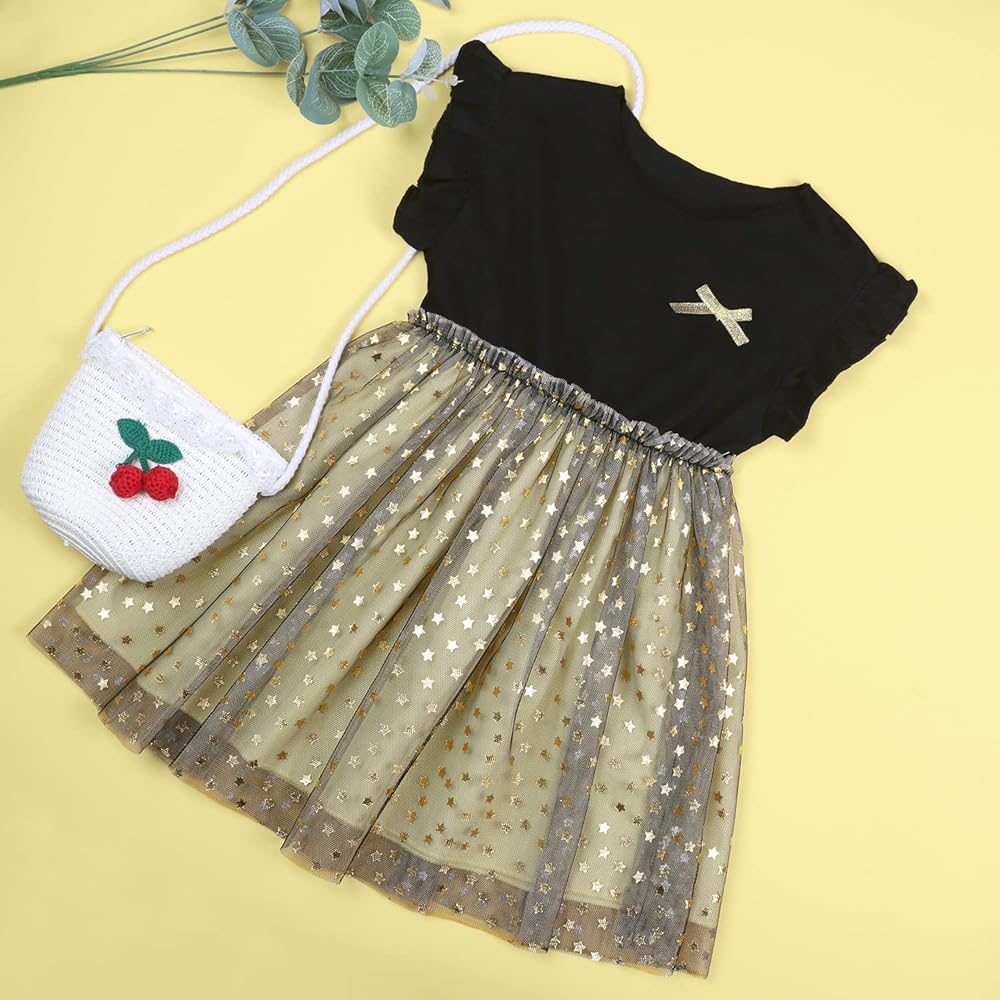 فساتين توتو للفتيات الصغيرات من AGQT فستان كاجوال بدون أكمام على شكل نجمة ترتر مقاس 1-7 سنوات