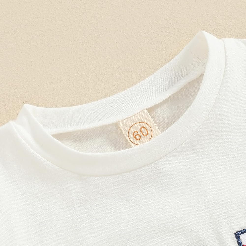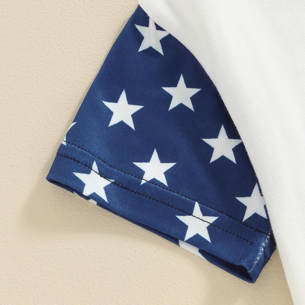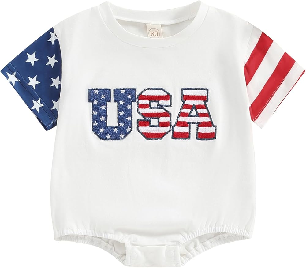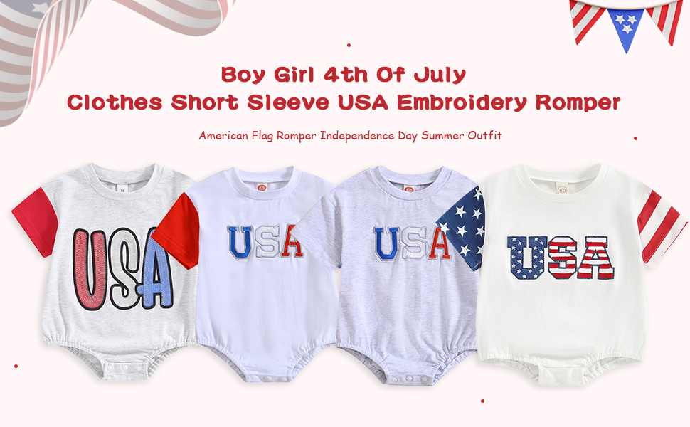 Gueuusu صبي فتاة 4th من يوليو ملابس قصيرة الأكمام الولايات المتحدة الأمريكية التطريز رومبير العلم الأمريكي رومبير يوم الاستقلال الزي الصيفي