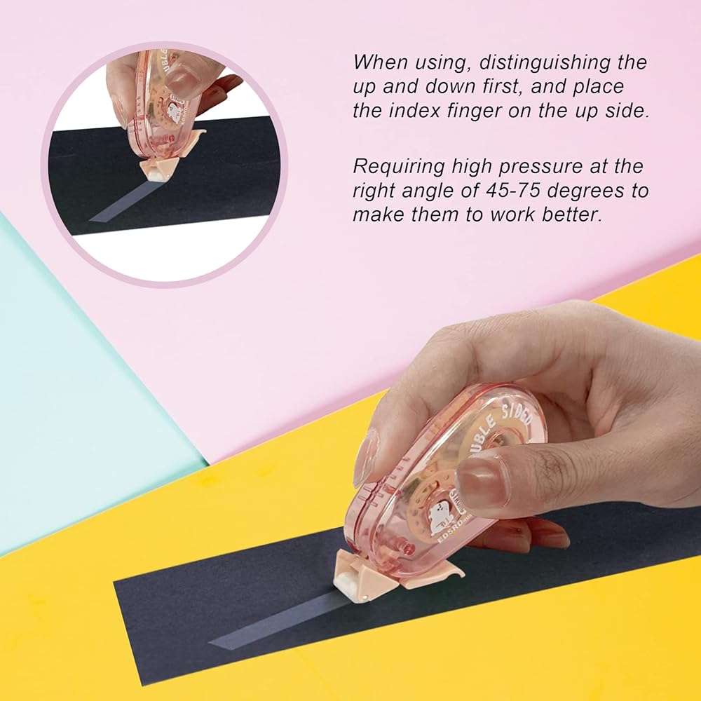• EASY TO USE:Our double-sided scrapbooking tape rollers are super long and tear-resistant, but require some pressure at the right angle to roll better in straight or curved lines. To prevent unwanted sticking, it has a protective tip cover.