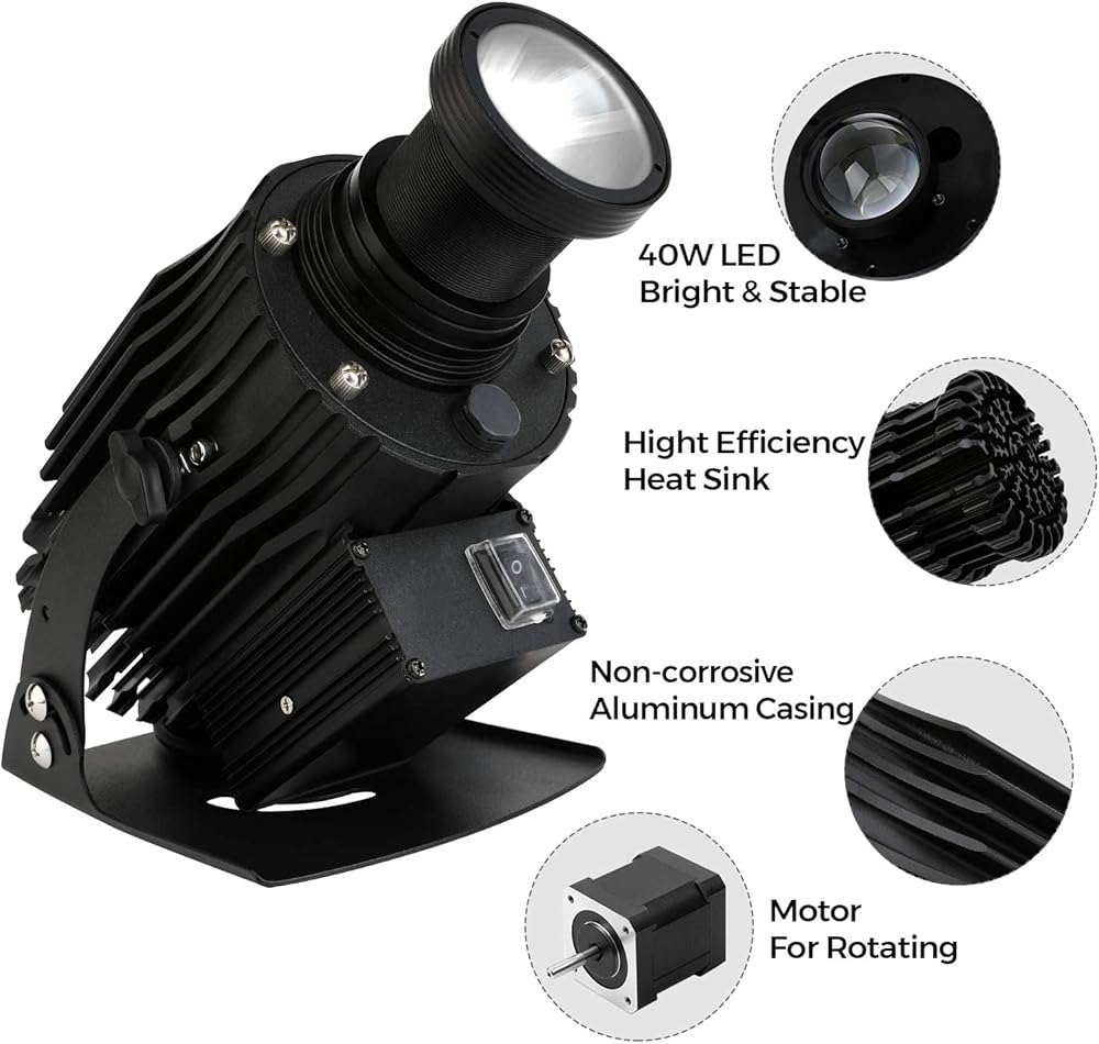 فائق السطوع: مجهز بمصباح LED اوسرام 40 وات، يقدم جهاز العرض شعاعًا مشرقًا لتعزيز علامتك التجارية لأي استخدام، مما يجعله مثاليًا للإعلانات متوسطة الحجم وحدث الشركة والزفاف.