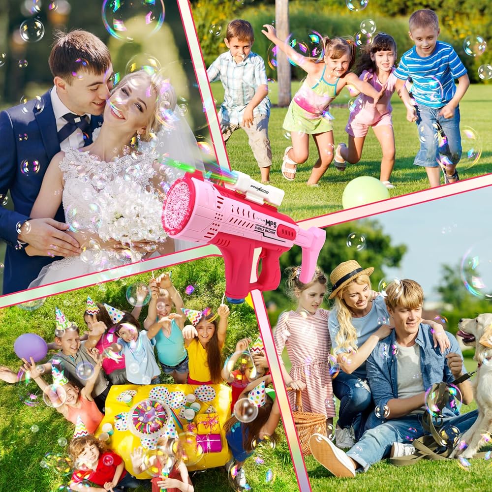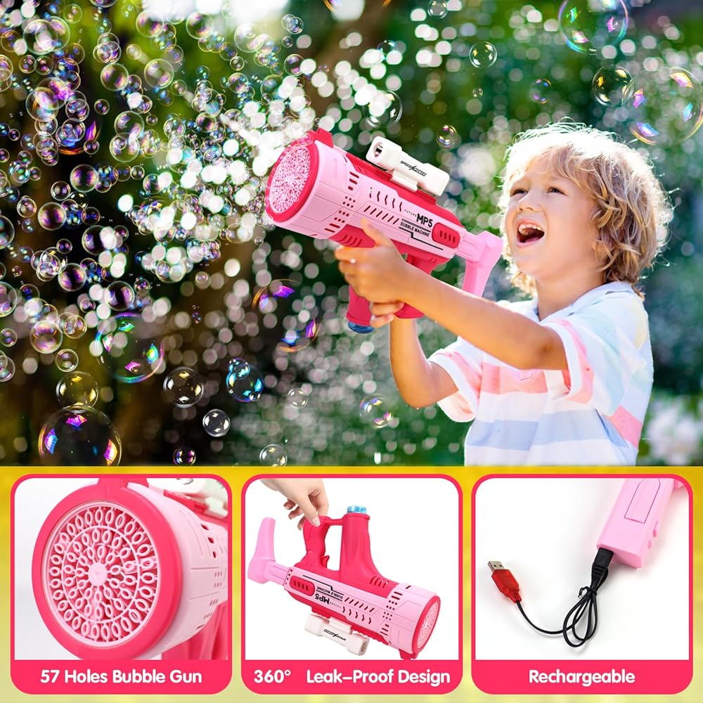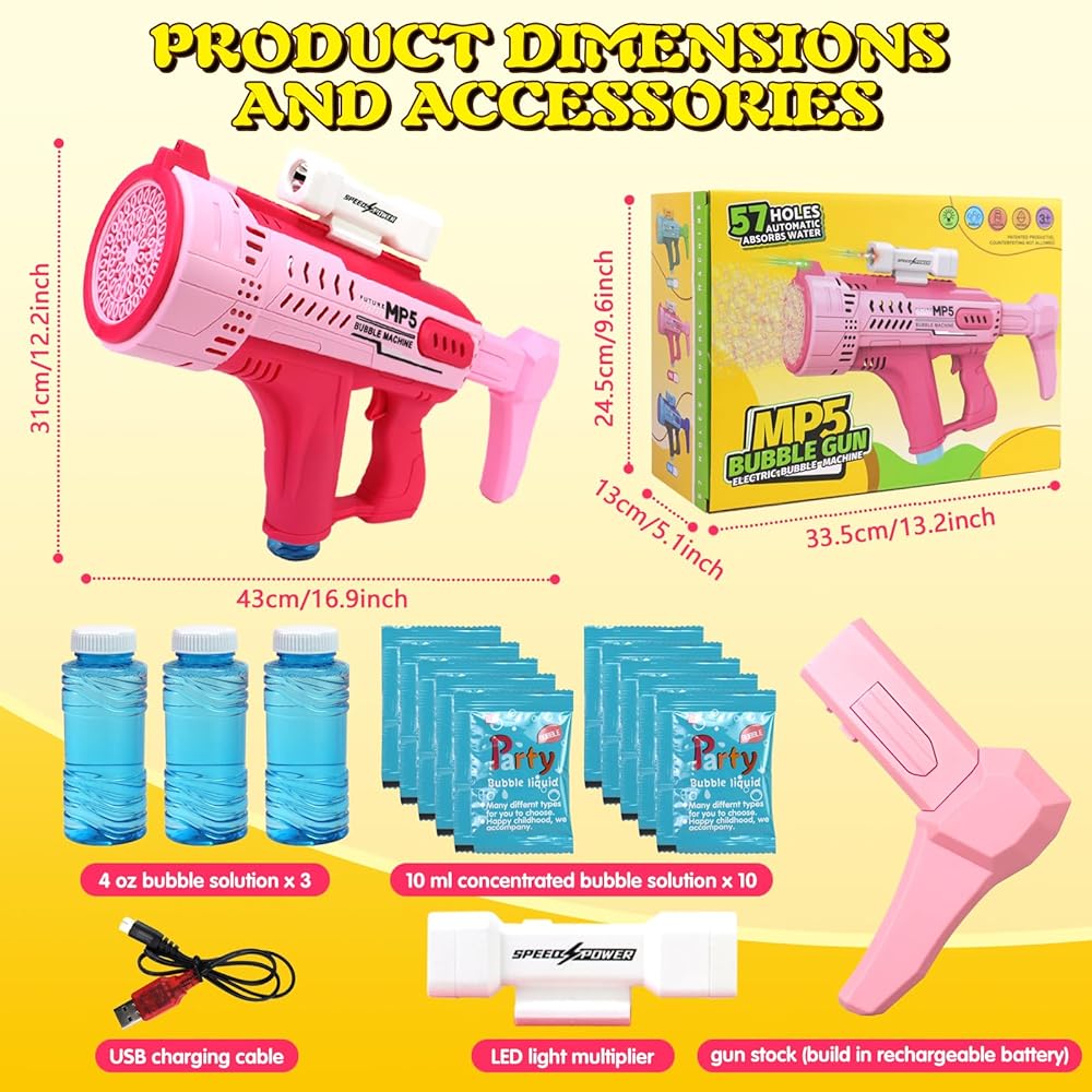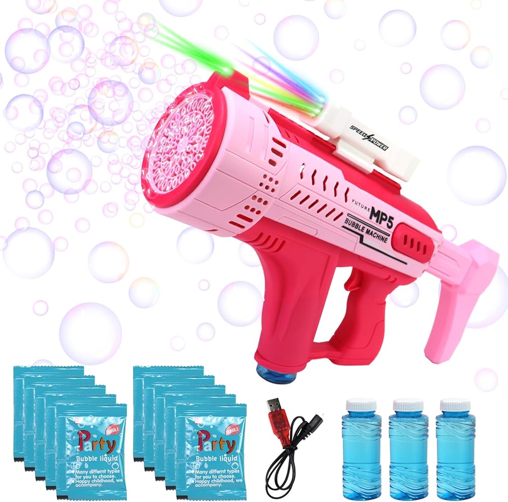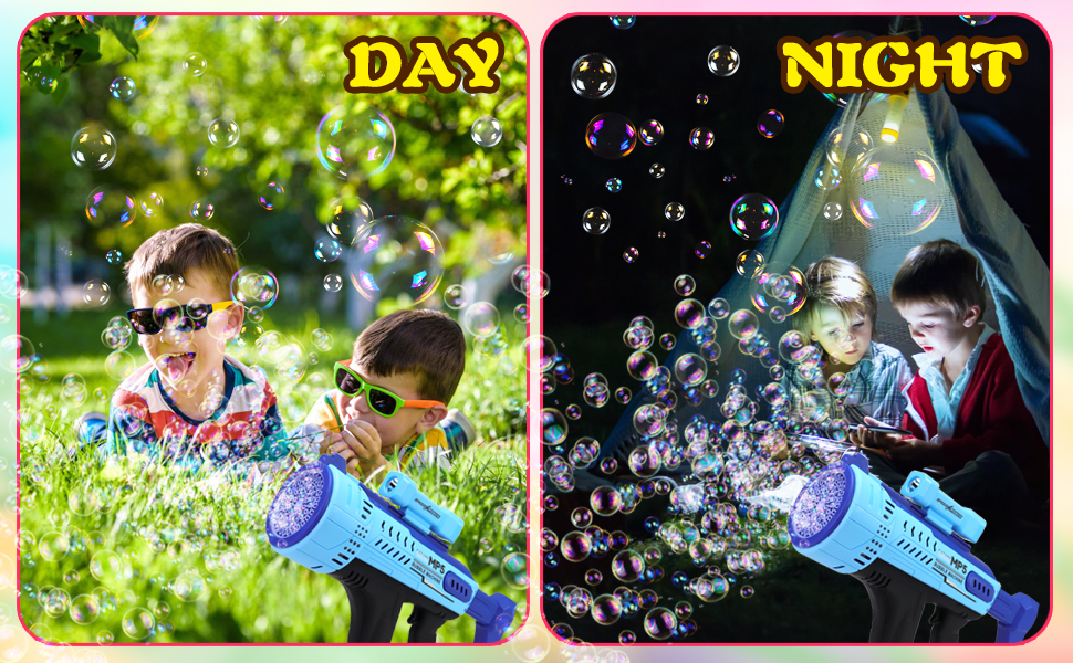 مسدس الفقاعات ذو 57 ثقبًا: ابدأ رحلة الفقاعات الملونة بزر واحد! تأتي آلاف الفقاعات من آلة الفقاعات هذه. مجهزة بمصابيح LED، تضيء في الظلام، وتحول أي نشاط ليلي إلى مشهد رائع. بسحب الزناد، تمتلئ السماء بألعاب فقاعات المطر الرائعة ذات ألوان قوس قزح للأطفال بعمر 3 4 5 6 7 8 9 10 سنوات فما فوق.