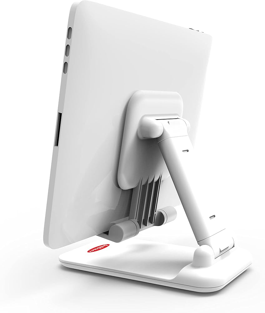 • قابلة للطي والحمل - يتيح لك التصميم النحيف والمدمج للكمبيوتر اللوحي وحامل الهاتف تخزينه بسهولة في حقيبة الكمبيوتر المحمول أو حقيبة الظهر الخاصة بك وأخذه إلى أي مكان تذهب إليه. مثالية للسفر ورحلات العمل.