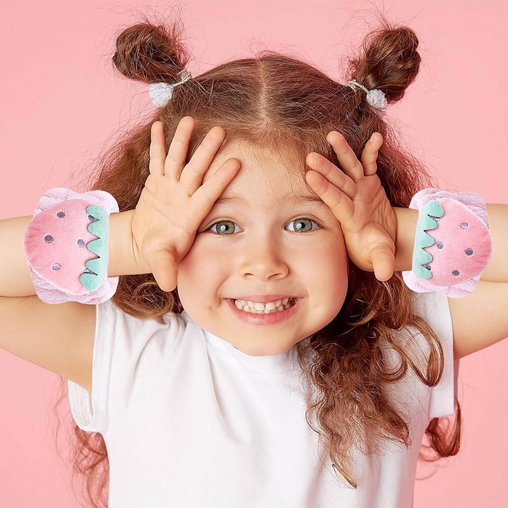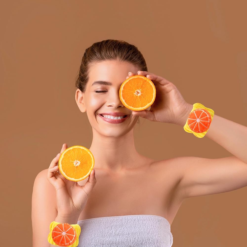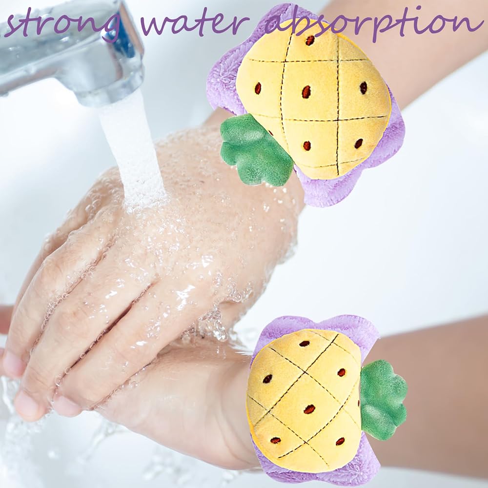 مجموعة أحزمة غسيل المعصم الصيفية - هناك 4 أزواج من أساور المعصم المصنوعة من الألياف الدقيقة بأربعة ألوان مختلفة مع دمية فاكهة مختلفة، الخوخ، الفراولة، الأناناس، البرتقالي، الجميلة والملونة، ستمنحك مزاجًا جيدًا