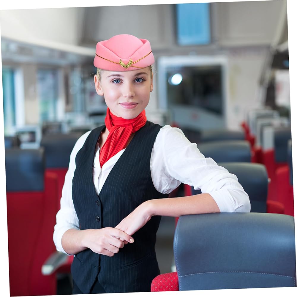 🎀【قبعة الحفلات التنكرية】 تفاصيل دقيقة، قبعة المضيفة هي دعامة مثالية للحفلات التنكرية والحفلات التنكرية والأداء، يمكنك ارتداء إكسسوارات زي مضيفات الطيران معًا في حفلة الهالوين وحفلة موضوع الطيران والحفلات التنكرية وما إلى ذلك.