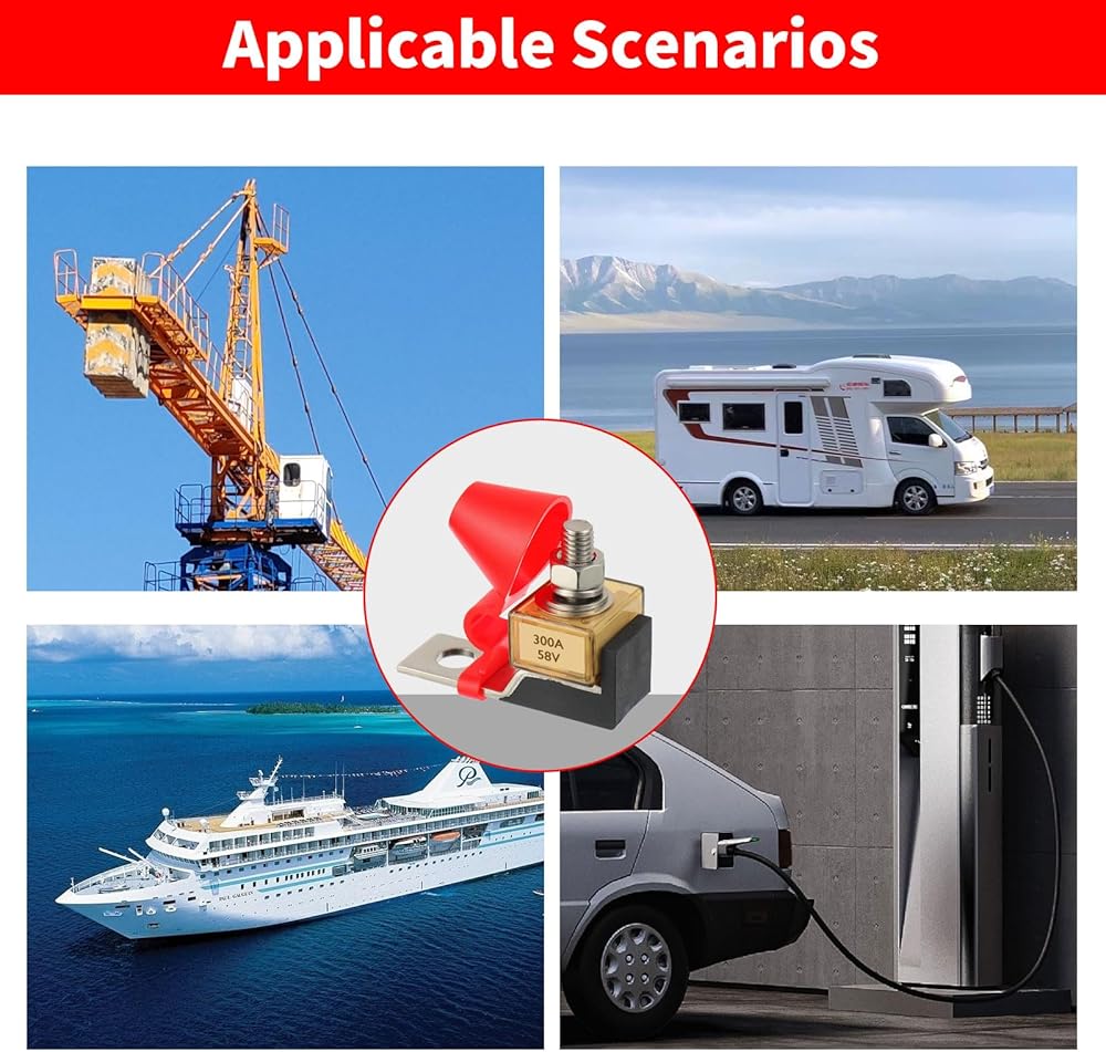 MEROM 300A 58V كتلة الصمامات محطة البطارية جبل مجموعة كتلة الصمامات مع 5/16 "-18 (8 مم) مسمار المحطة، MRBF لمركبات الطاقة الجديدة RVs السفن السياحية الرافعات بطاريات الشحن أكوام