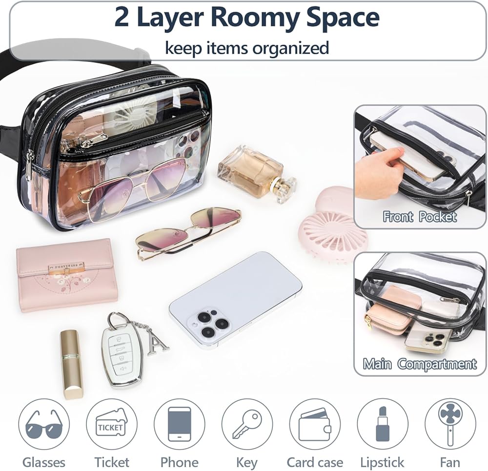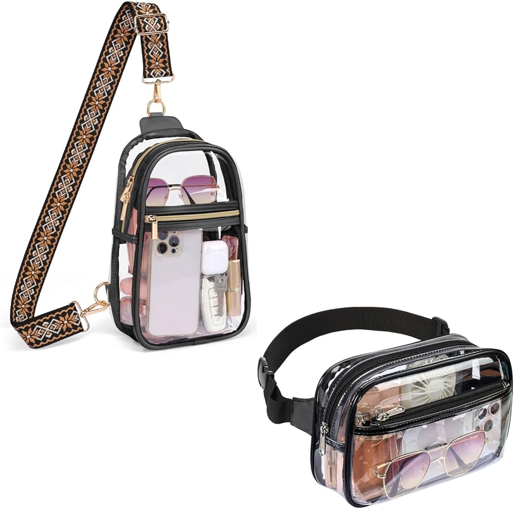 ▶Bundle Package - 2 items in all, Black clear sling bag and Black clear fanny pack ; Meets your different needs! If you just need one of these, please see below and you can buy it individually.