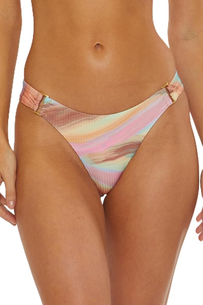 Elevate your swimwear collection with the Isabella Rose Newport Dunes - Women's Cali Bikini Bottom. This piece combines the allure of Brazilian coverage with the sophistication of matte gold buckles at the sides, creating a statement piece for any beach or pool occasion. Crafted from a high-quality blend of 88% Polyester and 12% Spandex, it offers both comfort and flexibility, adapting seamlessly to your body. Whether you're enjoying a vacation, honeymoon, or just a day by the water, these bottoms cater to various styles, from beachwear to bridal bathing suits. Practical yet stylish, they are an essential addition to your summer wardrobe. Remember to care for your bikini by hand washing in cold water to retain its stunning appearance.
