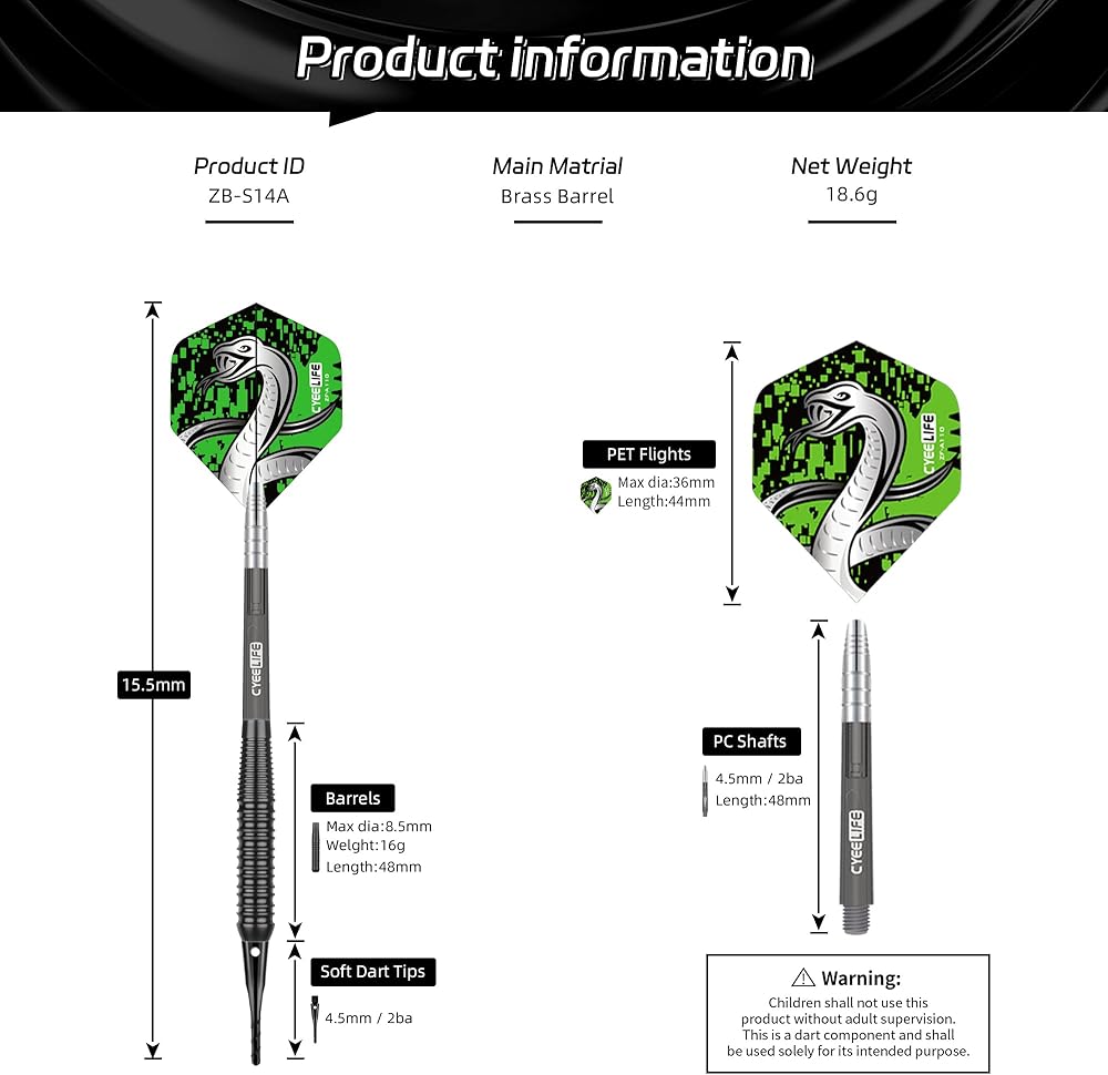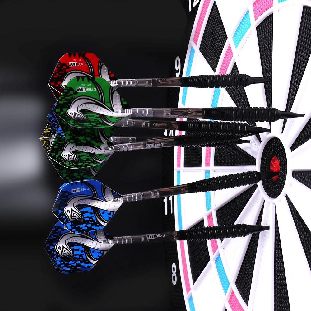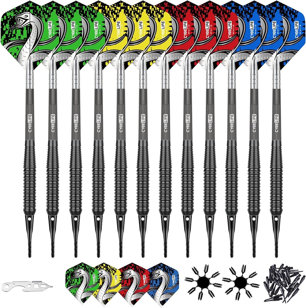 CyeeLife 12 قطعة من السهام ذات الأطراف الناعمة، مجموعات رمي السهام ذات الأطراف البلاستيكية الاحترافية 18 جرامًا مع 13 قطعة من أعمدة الكمبيوتر الشفافة و100 طرف إضافي للسهام و16 قطعة من الرحلات الجوية و2 قطعة من واقيات الطيران ومفتاح الربط للوحة رمي السها