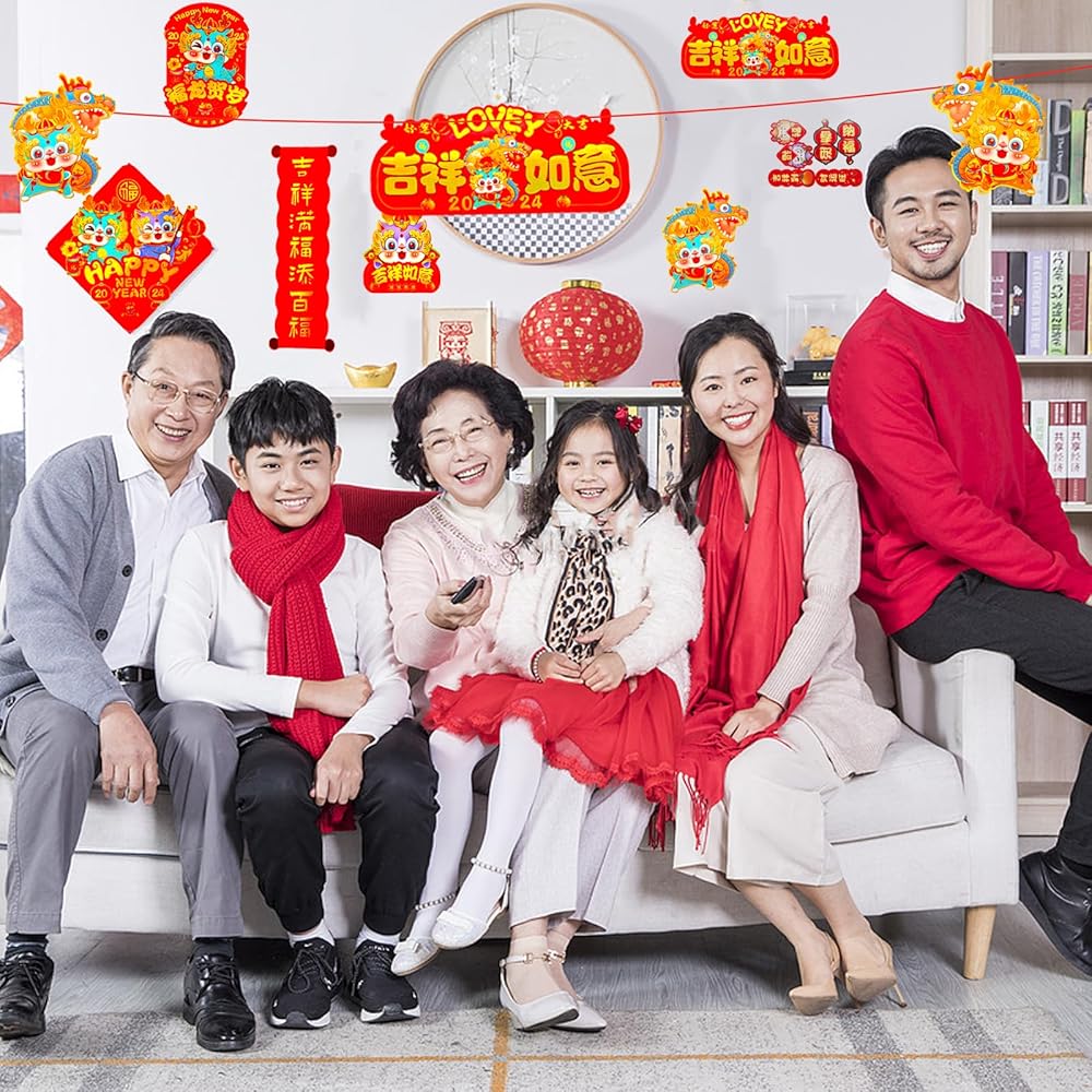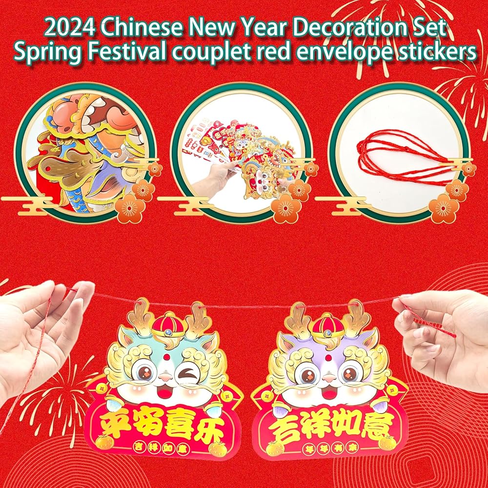 【🐉 92 قطعة من ديكورات السنة الصينية الجديدة 2024 🎊】استعد للترحيب بعام التنين مع مجموعة ديكور السنة الصينية الجديدة الشاملة والمبهجة. بإجمالي 92 قطعة، تم تصميم هذه المجموعة لتحويل منزلك أو مكتبك أو حفلتك إلى احتفال نابض بالحياة بمهرجان الربيع القمري. من المقاطع (Chunlian) والأظرف إلى البطاقات وملصقات النوافذ وصناديق الهدايا وشخصيات Fu ولافتات الشرفة، تحتوي حزمة الديكور الشاملة هذه على كل شيء. 🏮