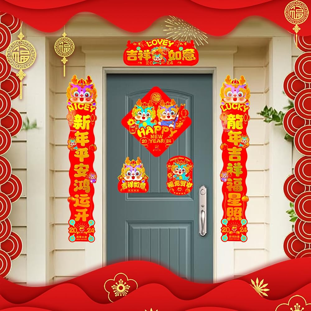 【🎉 متعدد التطبيقات والاحتفال الكامل 🥳】مجموعة أزواج باب التنين الخاصة بنا مثالية لتزيين أبواب العام الصيني الجديد، وديكورات مهرجان الربيع، وزخارف العام الصيني الجديد، ولوازم حفلات العام الصيني الجديد، وديكورات العام الصيني الجديد 2024، وصينية جديدة زينة حفلة العام، زينة معلقة للعام الصيني الجديد، ديكور منزلي للعام الصيني الجديد، زينة حفلة رأس السنة الصينية، زخارف معلقة للعام الصيني الجديد، إلخ.