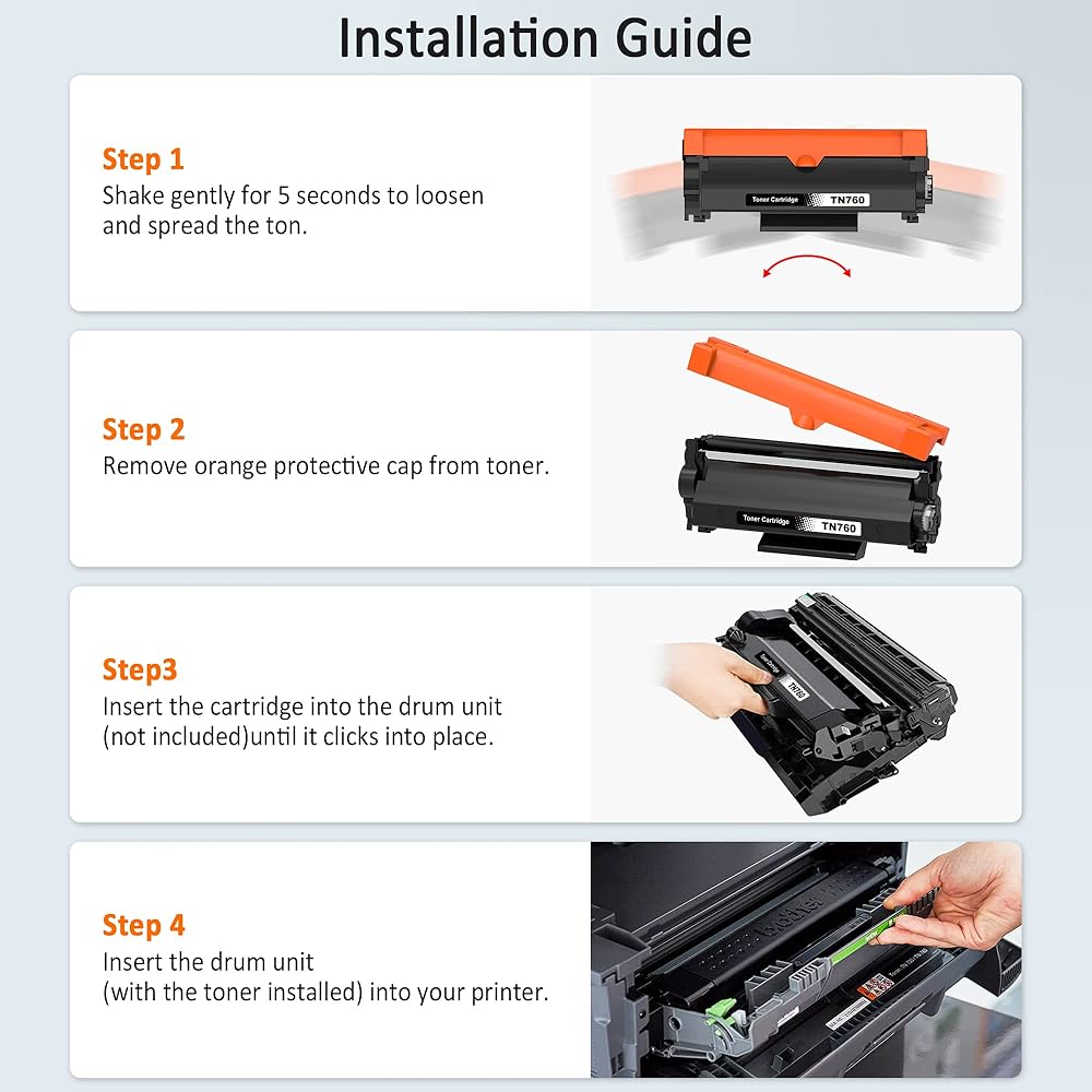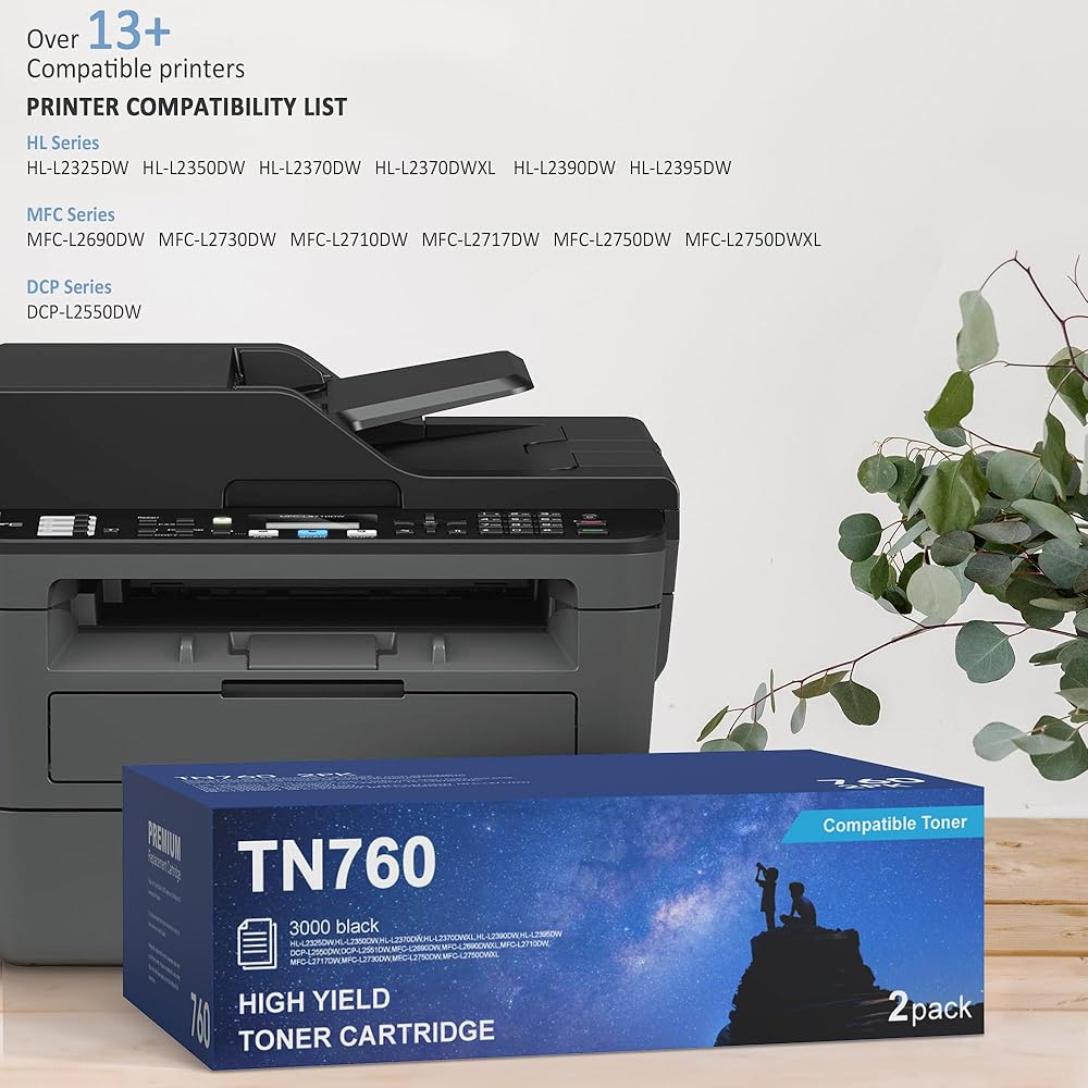 📦تتضمن العبوة: عبوتين من استبدال خرطوشة الحبر الأسود المتوافقة لخراطيش الحبر Brother TN760 TN730 TN-760 TN-730.