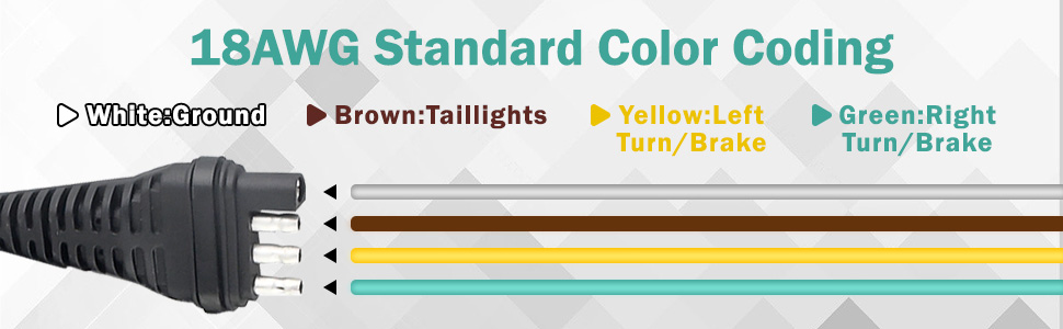 كابل تمديد الأسلاك للمقطورة مع غطاء غبار مطاطي لسلك قياس 18، وصلة التوصيل والتشغيل