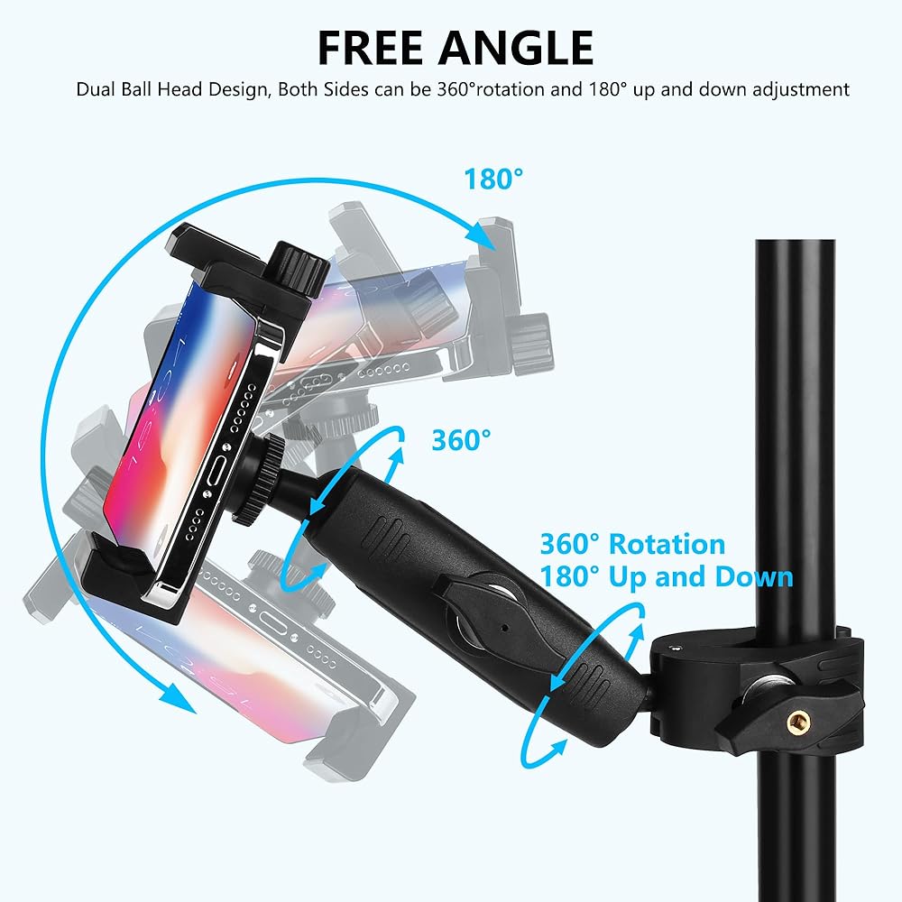 • 【قابلية تعديل ممتازة】يتم تركيب حامل الهاتف على دراجة السيارة للتسوق باستخدام تصميم رأس كروي مزدوج، دوران 360 درجة يسمح لجهازك بتعديل أي زاوية لتحقيق أي زاوية عرض، مثل الأفقي والرأسي والوجه لأعلى وأسفل أو الإمالة.