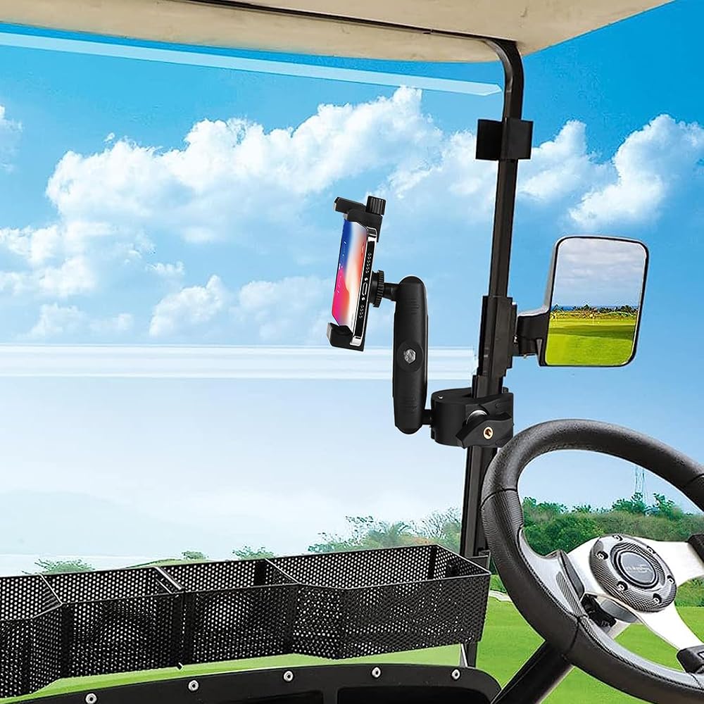 حامل هاتف عربة الجولف وعربة التسوق وحامل الهاتف المحمول مع Super Clmap للدراجات النارية والسكوتر ATV ومقود الدراجة، يناسب iPhone 14,13 Pro Max، Galaxy S21، Pixel، الأجهزة 3.5 بوصة -7 بوصة