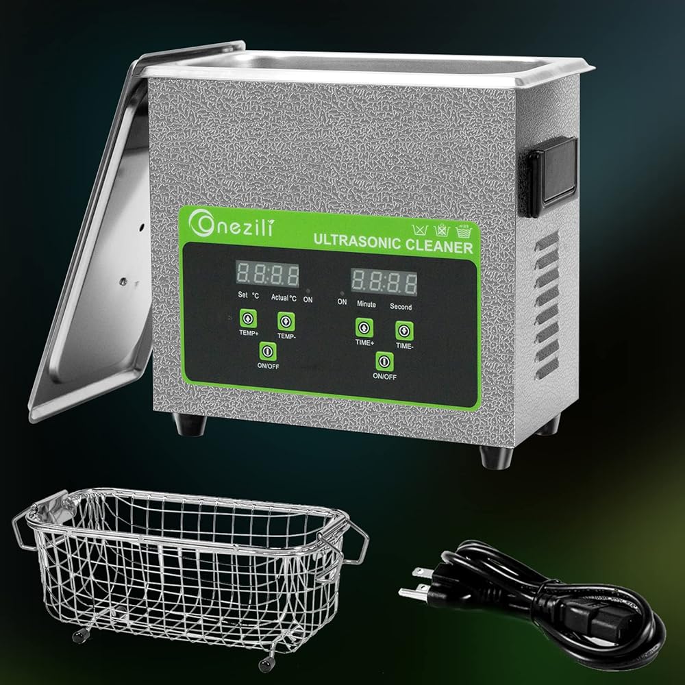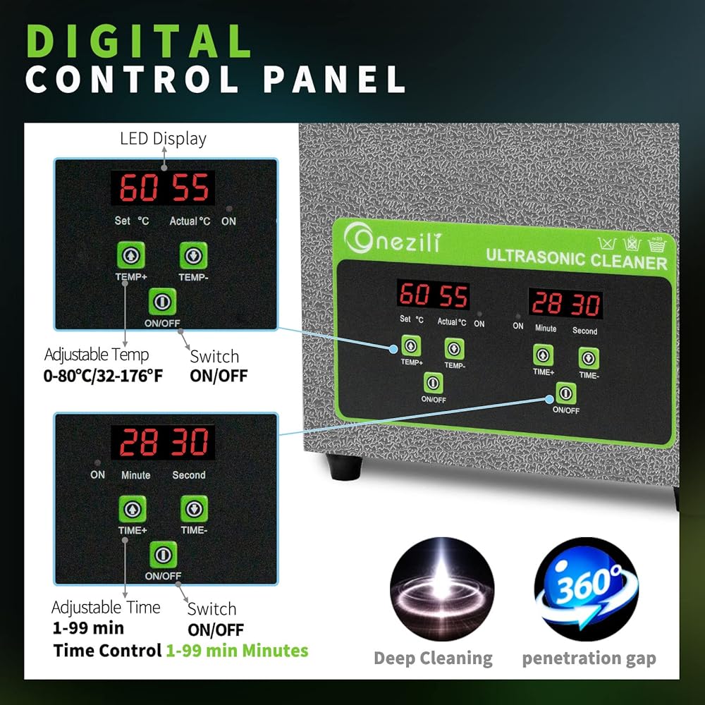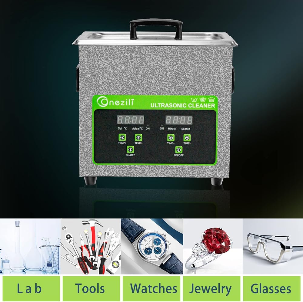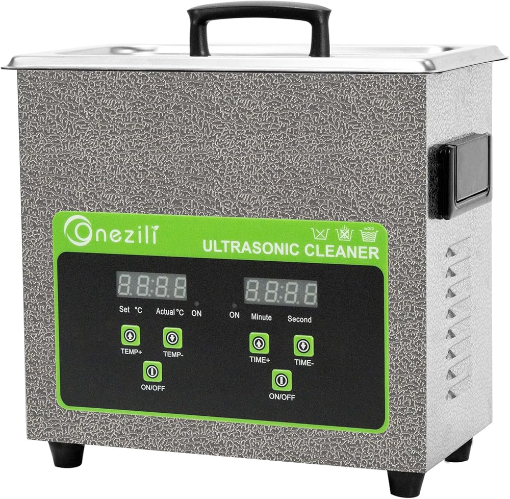 【مادة فاخرة】- آلة تنظيف المجوهرات الصوتية الاحترافية من أونيزيلي مصنوعة من الفولاذ المقاوم للصدأ SUS 304 عالي الجودة، جميع هيكل الفولاذ المقاوم للصدأ رقم 304 يجعل العمر الإنتاجي أطول بكثير. علاوة على ذلك، فإن سلك الطاقة الخاص بهذا المنظف بالموجات فوق الصوتية سميك وآمن للغاية.