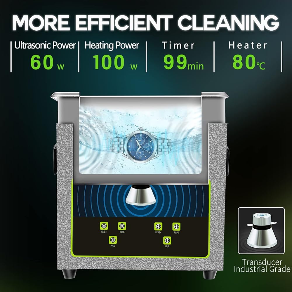 【تطبيقات عملية】- نظام تنظيف احترافي قوي يعمل على إزالة الأوساخ والزيوت والأوساخ من أغراضك القيمة بما في ذلك المجوهرات والنظارات والخواتم والماس والقلائد والساعات والعملات المعدنية وشفرات الحلاقة وأطقم الأسنان والأدوات والأجزاء والمزيد في دقائق. دون الإضرار بهم. نتائج التنظيف الاحترافية في كل مرة تجعل آلة تسخين المجوهرات بالموجات فوق الصوتية هذه جيدة للاستخدام التجاري أو المنزلي.