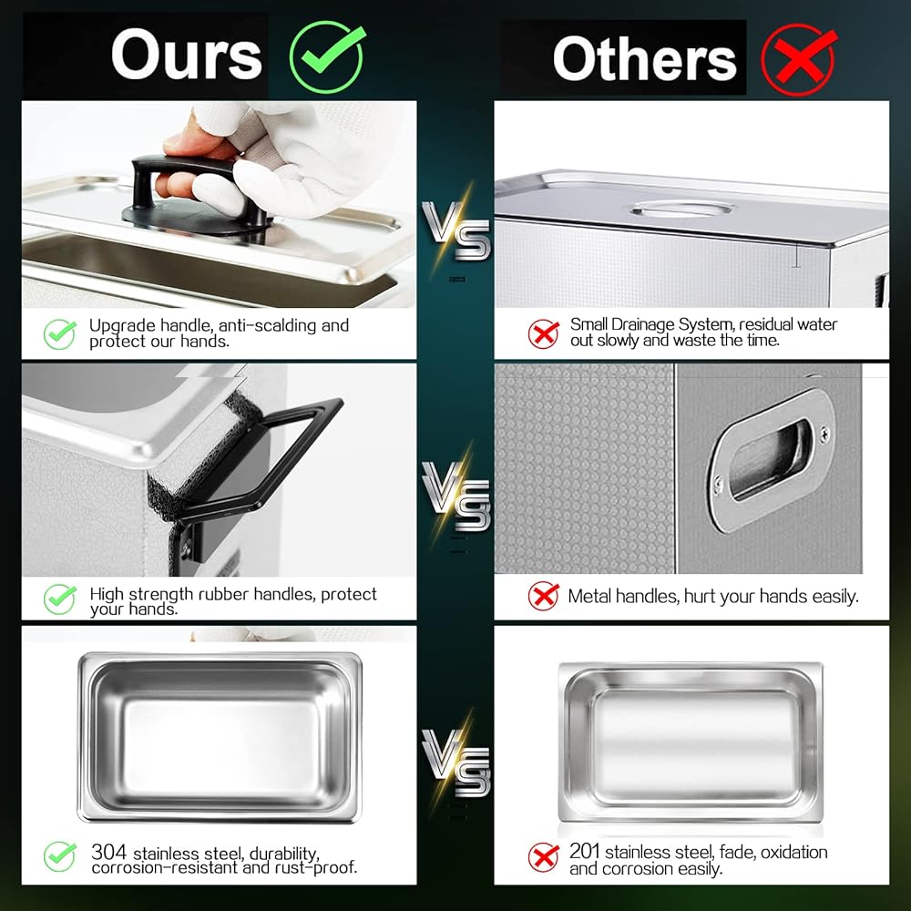 【التوقيت والعمل】- توقيت رقمي، وظيفة تسخين قابلة للتعديل، من 1 إلى 99 دقيقة، من 0 إلى 80 درجة مئوية، إيقاف تلقائي عندما يعد عرض المؤقت تنازليًا إلى الصفر، مما يوفر الوقت والعمل لك. نصائح ودية: أضف كمية من المنظفات يمكن أن تعزز التنظيف.