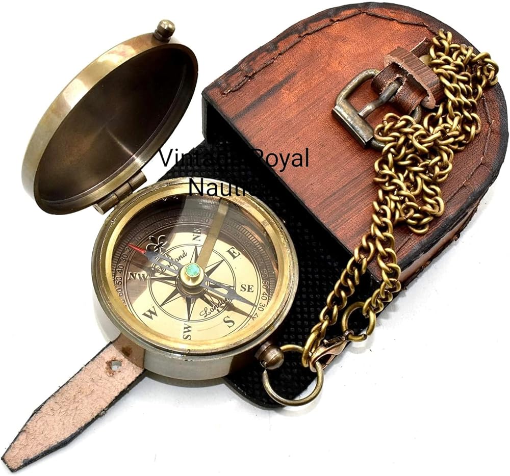 ✔️★ UTILITY AND DURABILITY : Brass compass with chain and Leather Storage Case Each compass is individually crafted and carefully packaged. Its antique finish enhances your home décor, study room decoration, office desks and more. It gives a classy and elegant touch to your space. It is made of premium quality solid brass that makes it long lasting for years.