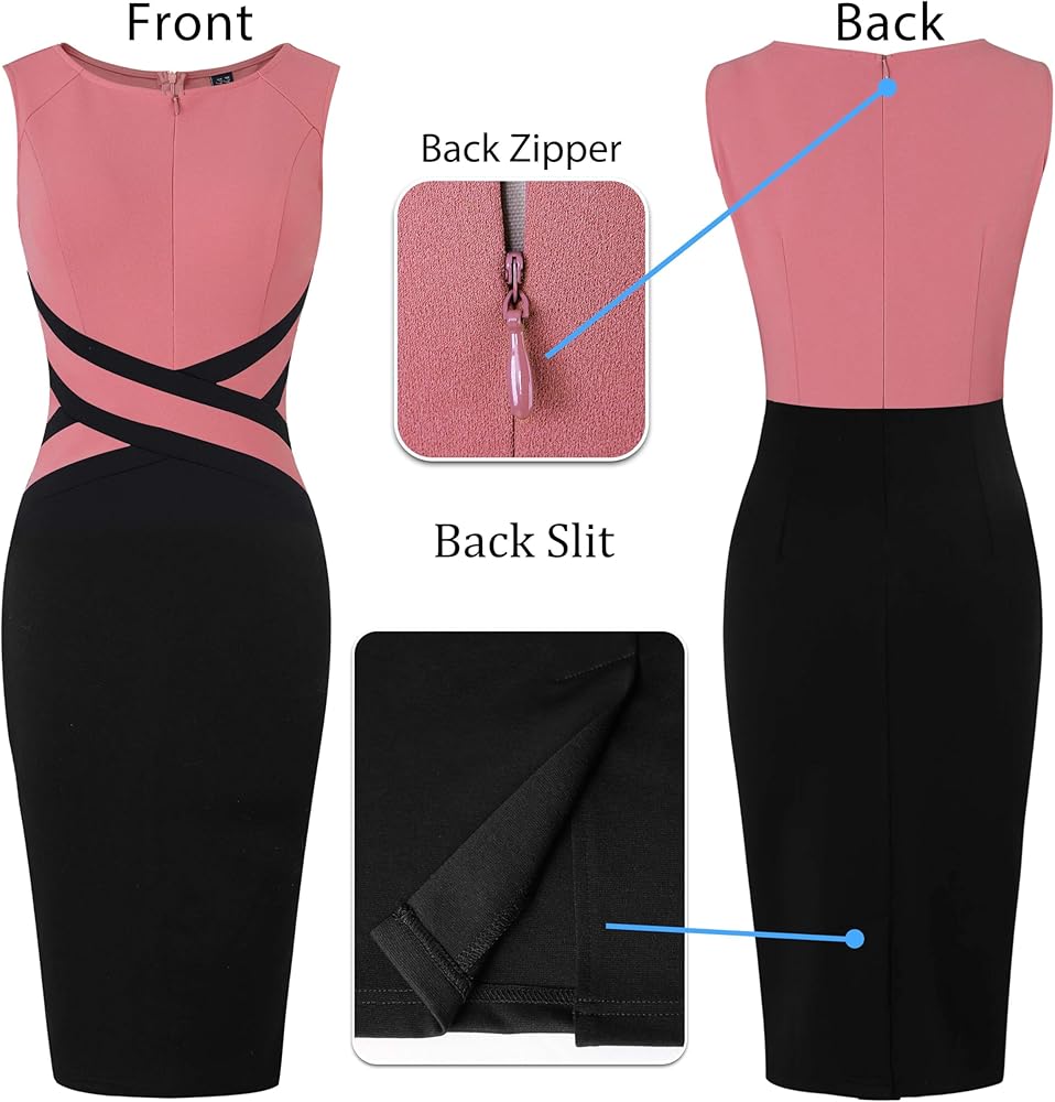 النمط: رقبة دائرية، بدون أكمام، تفاصيل خصر متقاطعة تخلق تأثيرًا نحيفًا، صورة ظلية غمد، سحاب خلفي مخفي، فتحة خلفية لسهولة المشي، سحاب أمامي قابل للتعديل [السحاب الأمامي القابل للتعديل يسمح لك بسحاب أو فك السحاب، ويجعلك أكثر إثارة أو متواضعة.].