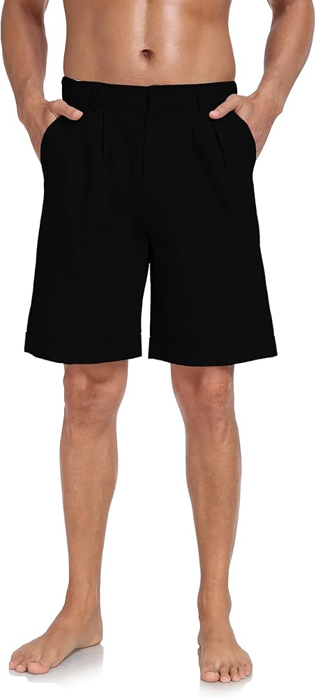 • القماش: هذا الشورت الرجالي المرن المسطح الأمامي مصنوع من 75% قطن و25% نسيج الكتان، خفيف الوزن، مسامي، مريح وصديق للجلد، يبقيك منتعشًا في الصيف.