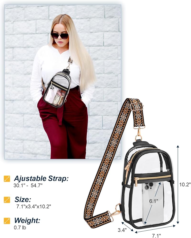 ▶Clear Bag Stadium Approved - White clear purse size 8.6" x 1.5" x 6.3" and the Black clear sling bag size 7.1"Lx 3.4"Wx10.2"H , Comply with clear bag policies effortlessly! (approved size: 12x6x12 inches), Packism's see-through small clear purse gets you through security swiftly, perfect for concerts and any stadium sports events.