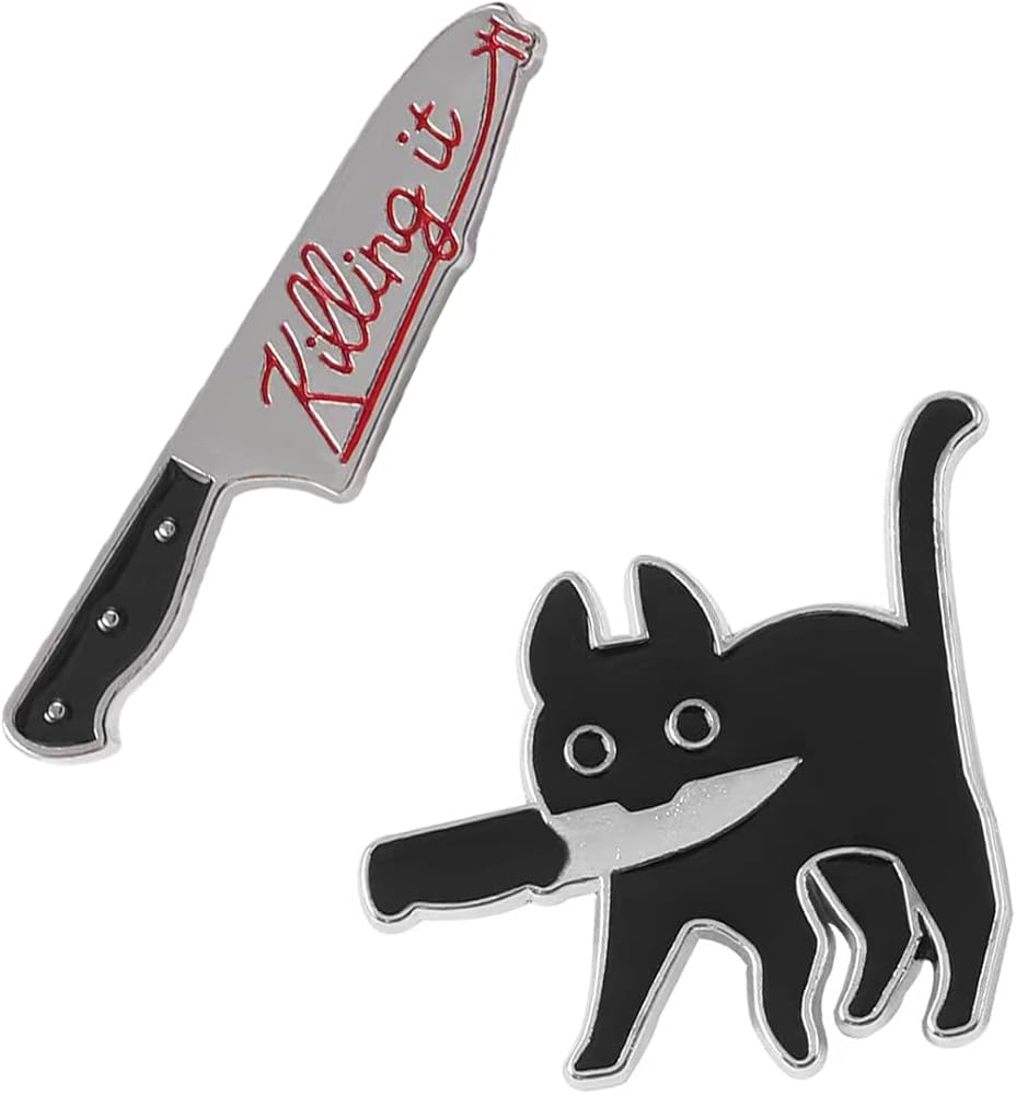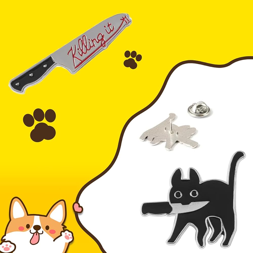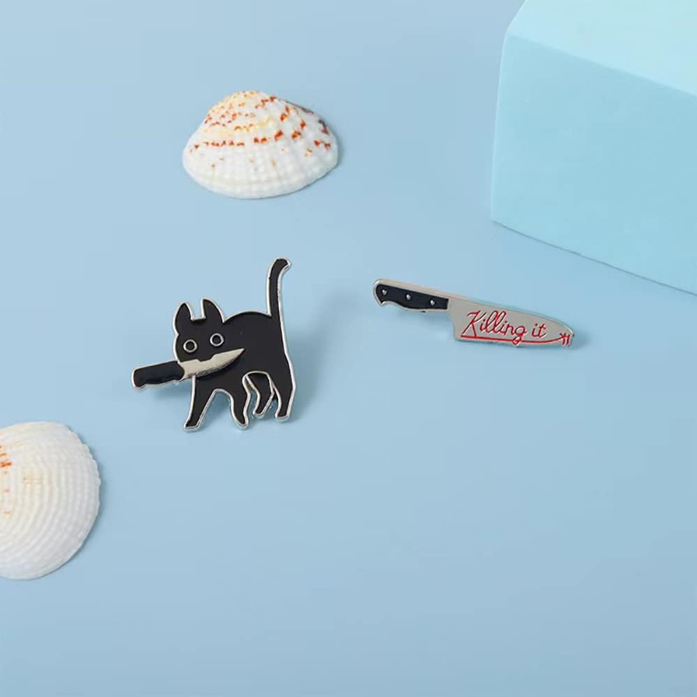 Cute Enamel Cat Pins Set, 2Pcs Enamel Pin Cool Brooches Pins for Backpacks Fits Women Men Girls and Boys