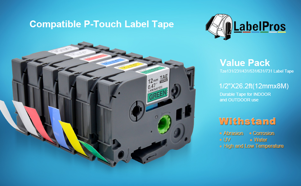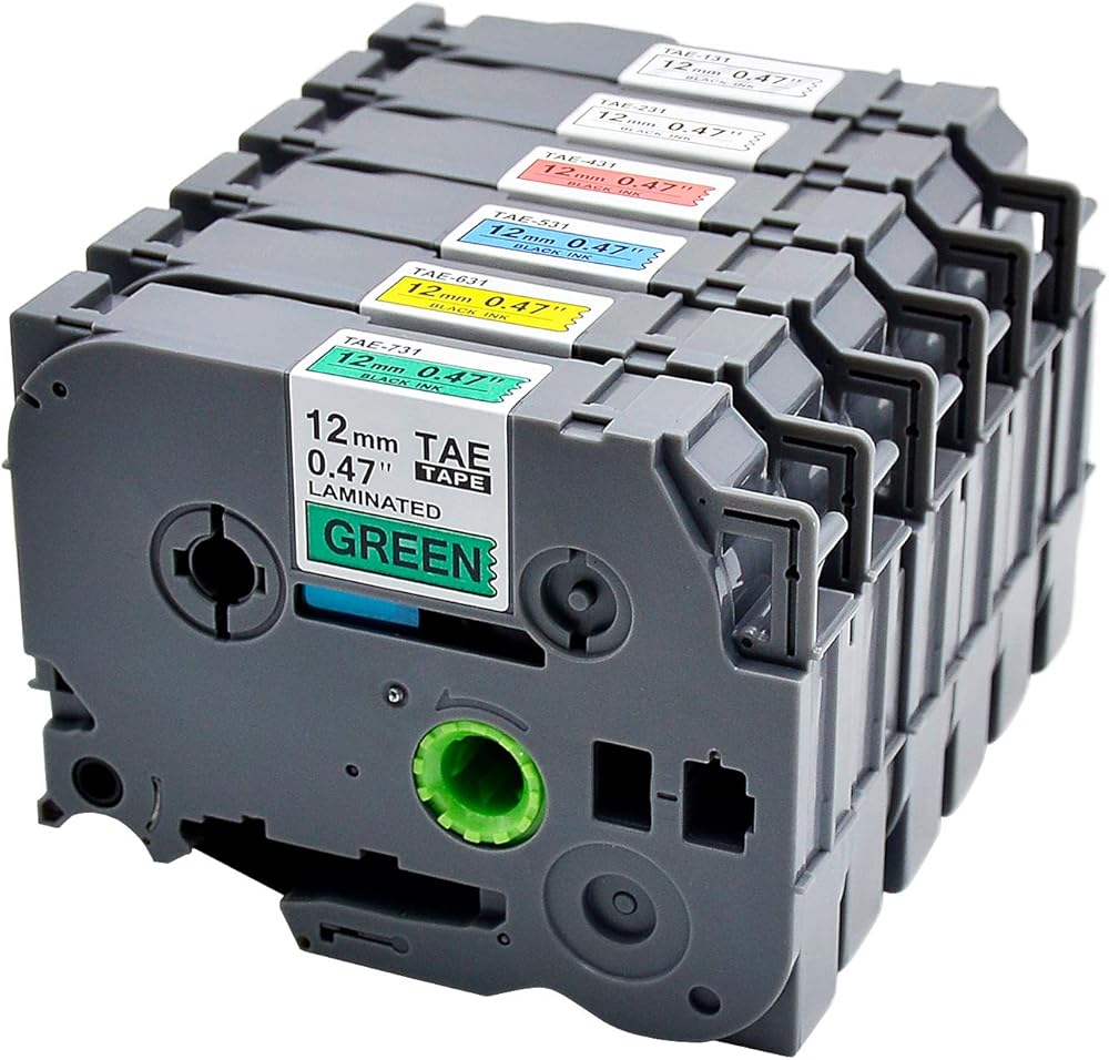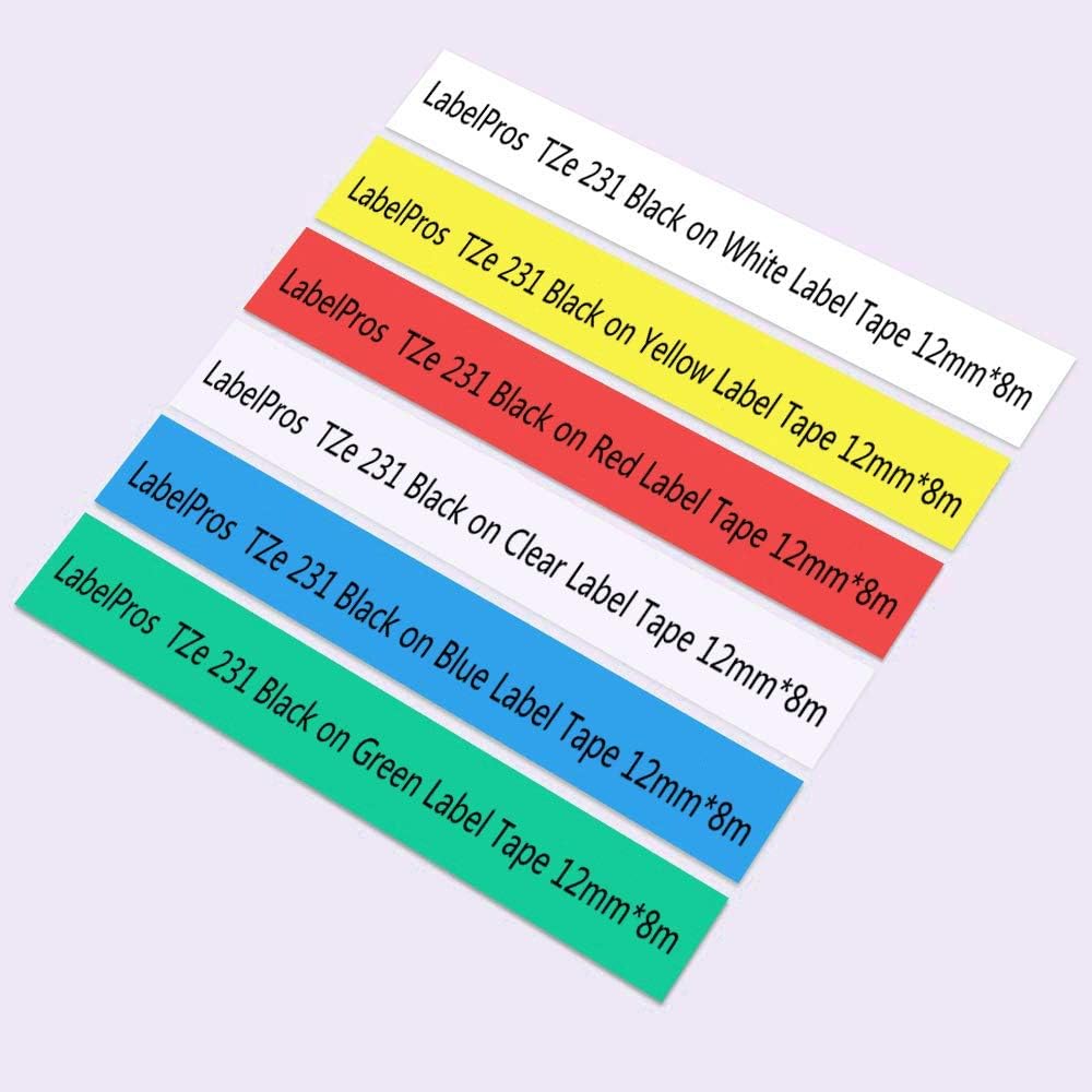 تتضمن الحزمة: 6 عبوات متوافقة مع Brother P-Touch TZe-131 TZe-231 TZe-431 TZe-531 TZe-631 TZe-731 شريط ملصقات مصفح، نص أسود على خلفية بيضاء/أحمر/أزرق/أصفر/أخضر/شفاف. العرض: 1/2 بوصة (0.47 بوصة)، الطول: 26.2 قدم (8 أمتار) لكل منها، 6 خراطيش شريطية بإجمالي 157.2 قدم. غير OEM. * ملاحظة: علامة TAE الموجودة في المنتج تعادل TZE، يرجى الاطمئنان عند الشراء.