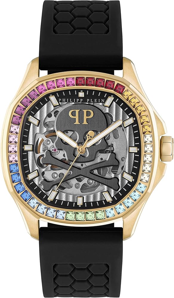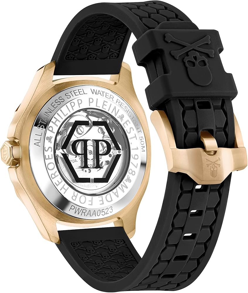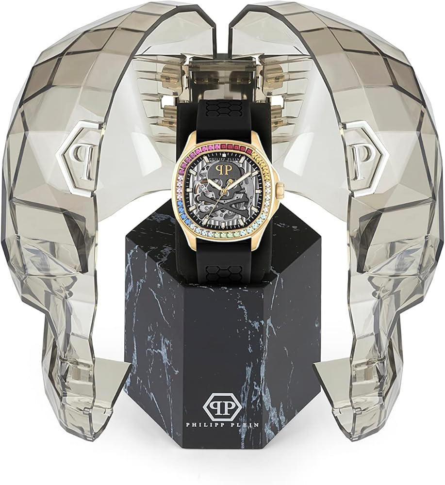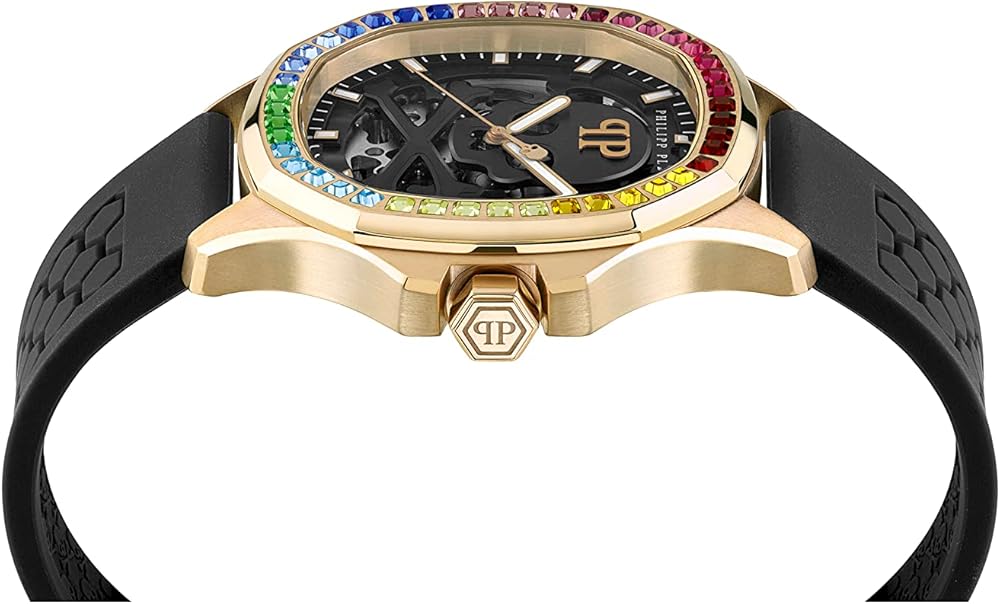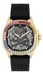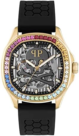 ساعة فيليب بلين الفاخرة للرجال من مجموعة فيليب بلين مع حزام أسود يتميز بهيكل ذهبي وقرص أسود