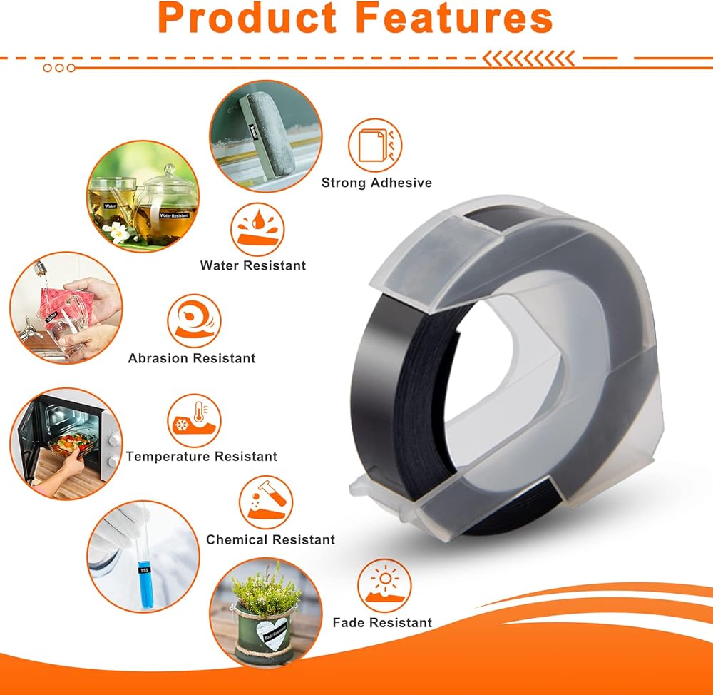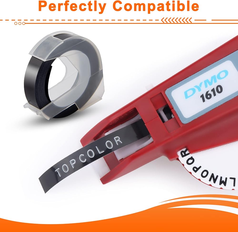 متوافق مع صانع الملصقات المزخرفة: Organizer Xpress Embosser، Organizer Xpress 12965، Organizer Xpress Pro Embosser، Organizer Xpress Pro 12966، Organizer Xpress Pro 1550 1595 1570، Embossing label Makers 1610، Office Mate II 1540، Compact Embosser، 1800 1880، MoTEX E101/ E202/E303، صانع ملصقات Penco، مزخرف شريط بلاستيكي قديم (Old Rotex Embosser، صانع ملصقات المدرسة القديمة)، S0717930 Omega Home Embosser، Junior Home Embosser.