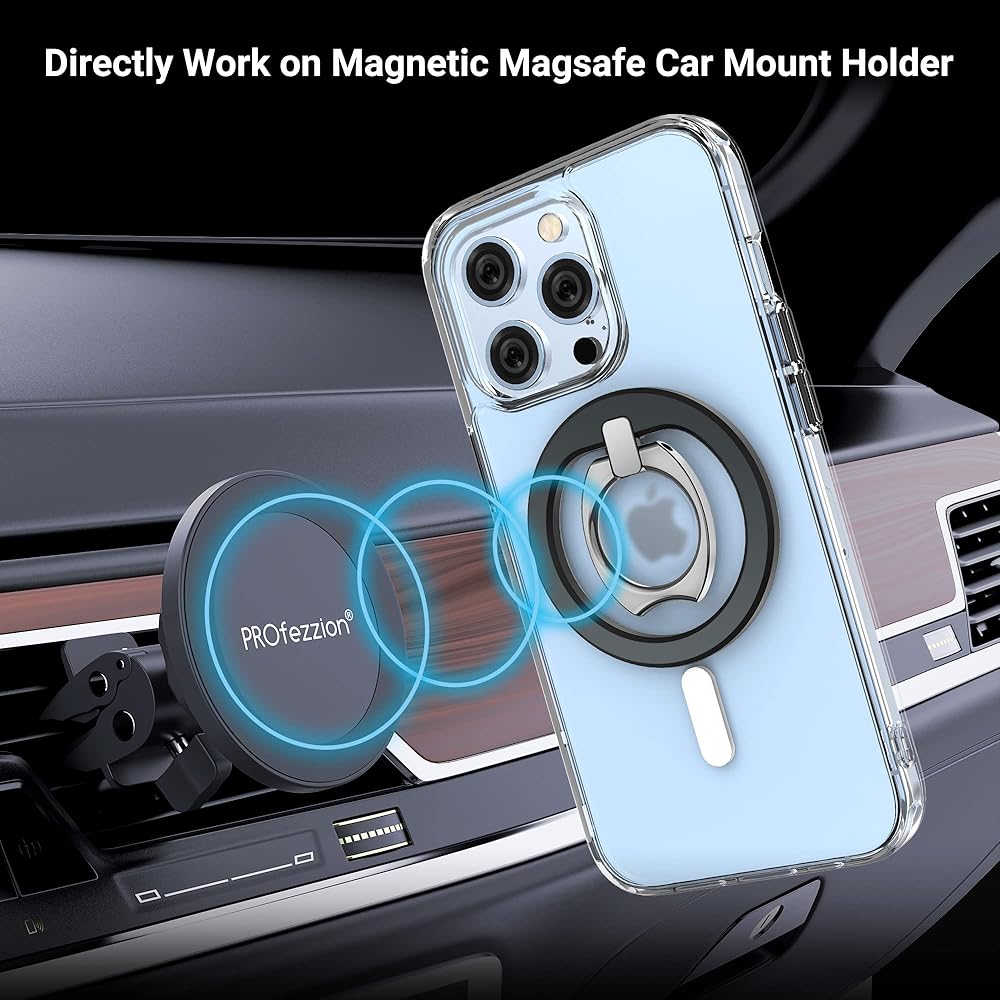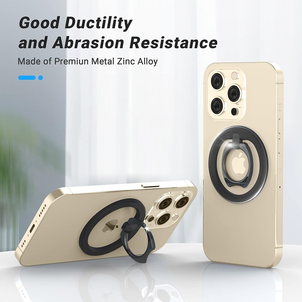قوة مغناطيسية قوية للغاية: مصممة بـ 17 مغناطيسًا قويًا مدمجًا، وتوفر مغناطيسًا صلبًا لتحمل ما يصل إلى 1.4 كجم/3.2 رطل، مما يضمن التصاقه بإحكام بجهاز iPhone 15/14/13/12 مع حافظة MagSafe ويحافظ على هاتفك الهاتف آمن بين يديك أو حامل السيارة المغناطيسي