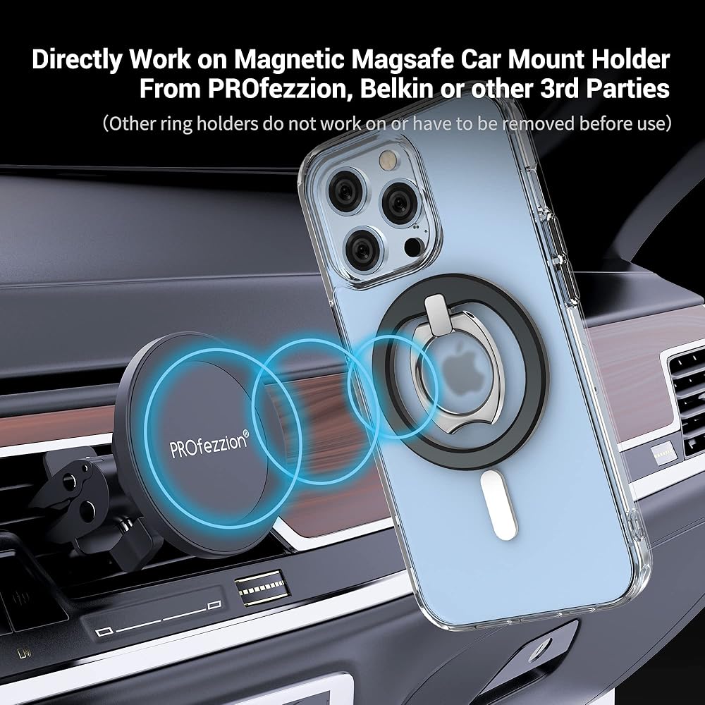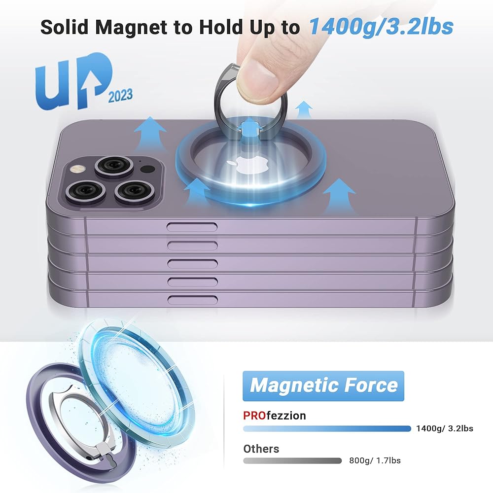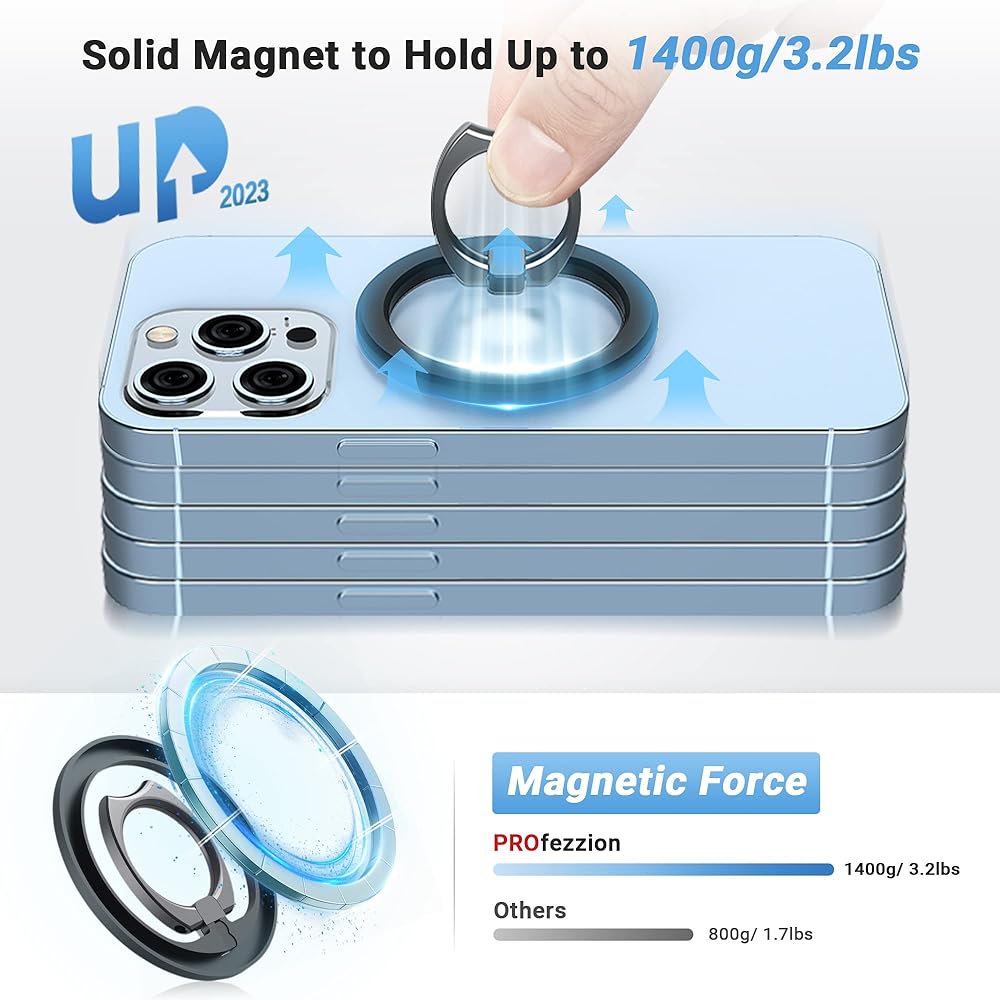 [عبوة من قطعتين] حامل حلقة معدنية رفيعة من PROfezzion لـ MagSafe، مقبض هاتف مغناطيسي قوي قابل للإزالة لهاتف iPhone 15 14 13 12 Pro Max Plus مع حافظة MagSafe [ليس للجراب العادي] [متوافق مع حامل السيارة MagSafe]