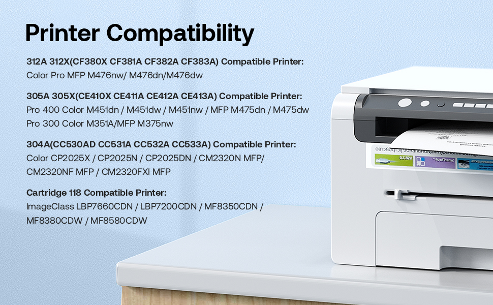 متوافق مع: HP LaserJet Pro 400 300 Color MFP M451dn M451nw M451dw M475dw M475dn M476nw M476dw M476dn M351A M375 M375nw CP2025X CP2025N CP2025DN CM2320N CM2320NF CM2320 FXI؛ طابعة حبر Canon ImageClass LBP7660CDN LBP7200CDN MF8350CDN MF8380CDW MF8580CDW.
