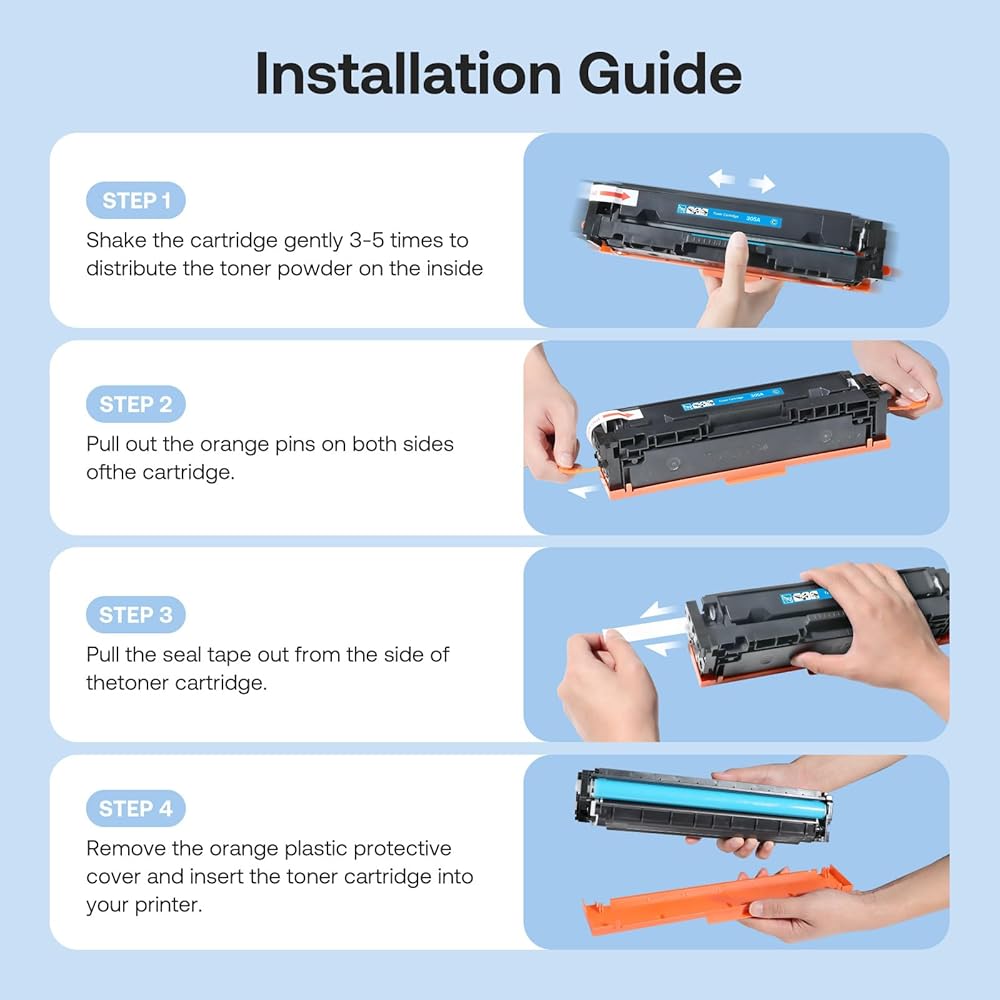 اسم المنتج: خرطوشة حبر 305A متوافقة مع HP 305A 305X 4 Pack CE410A عالية الإنتاجية لطابعة Laserjet Pro 400 Color MFP M451dn M475dn M476nw Pro 300 Color M351A M351 (أسود، سماوي، أرجواني، أصفر)