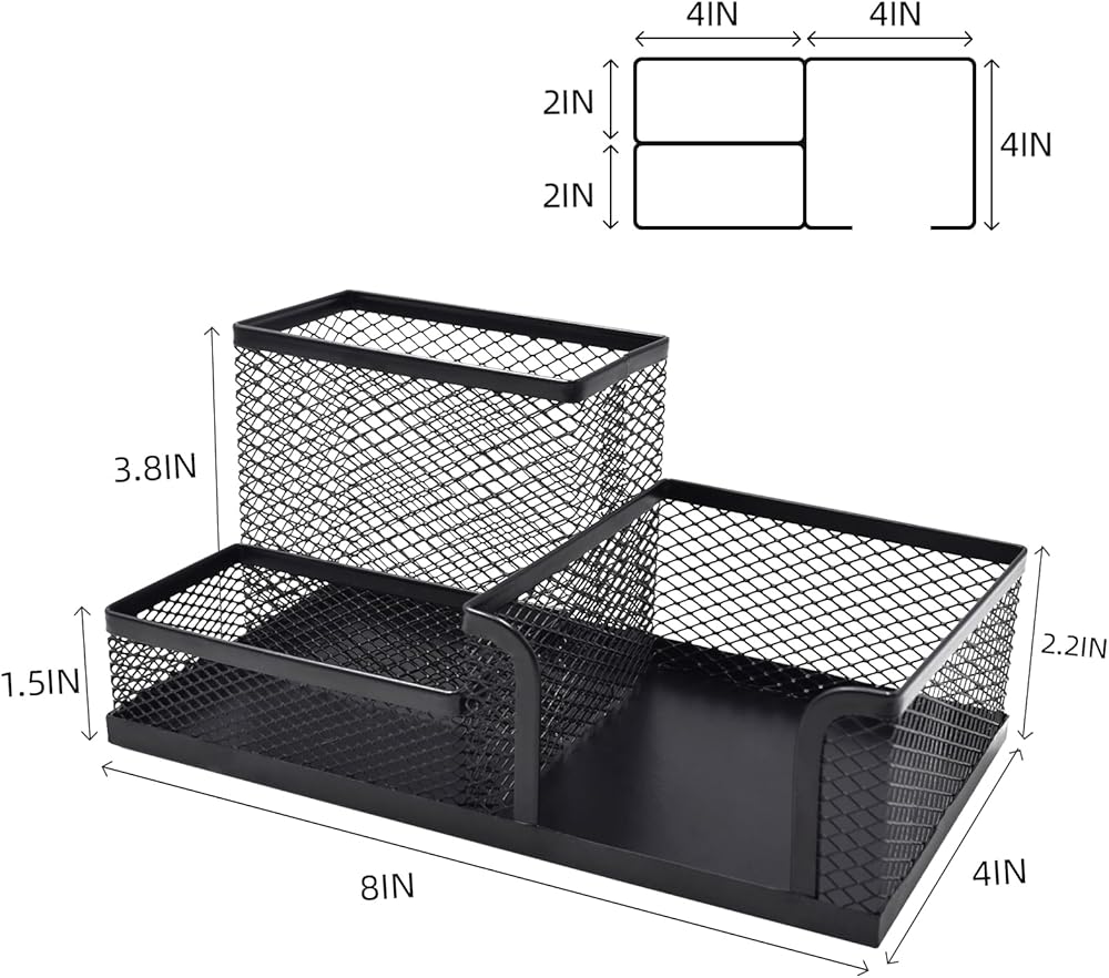 • توفير المساحة: يوفر الحجم 8 × 4 × 4 بوصة مساحة كافية لتنظيم الأقلام وأقلام الرصاص والملاحظات والمساطر وغيرها من اللوازم. استوفي متطلبات تنظيم سطح المكتب اليومية واجعل مكتبك يبدو أكثر أناقة ونظافة. علبة تنظيم ملحقات المكتب مناسبة أيضًا لأي مكان مثل المنزل والمكتب والمدرسة وما إلى ذلك.