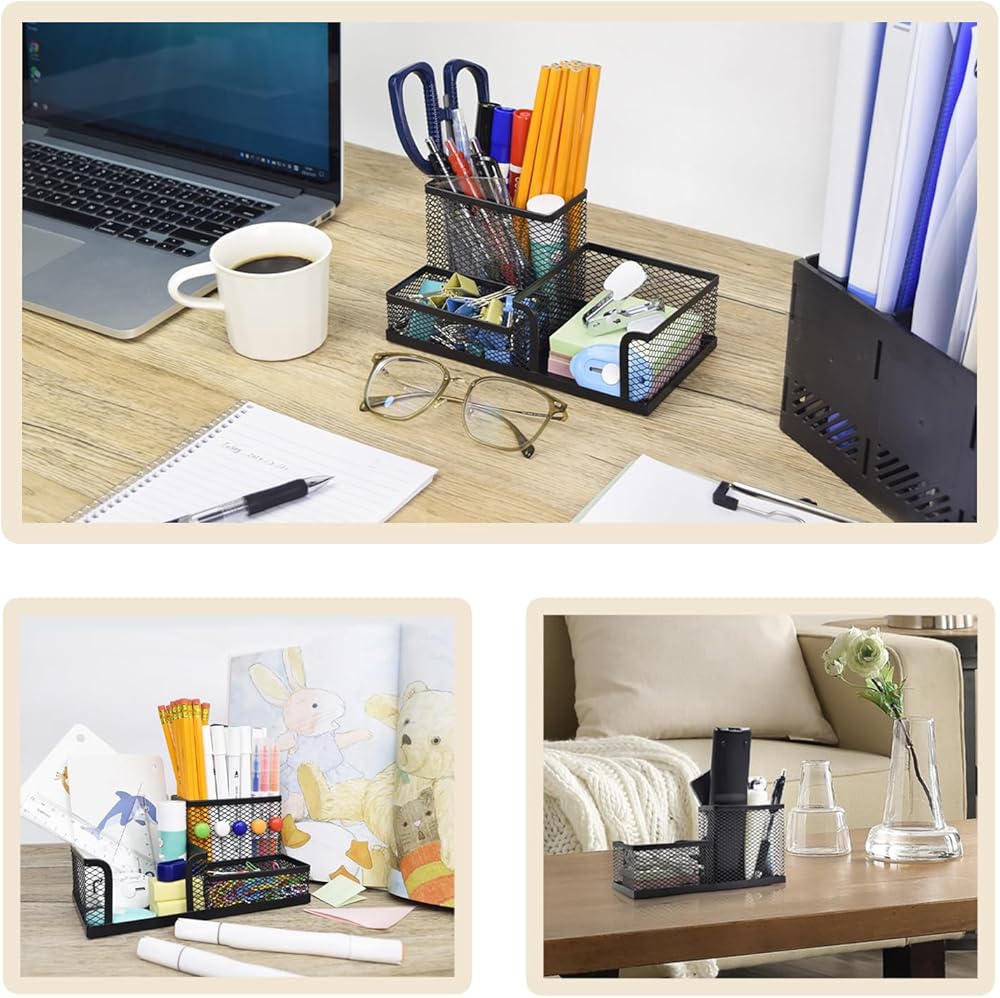 2 حزمة من منظمات مكتب حامل الأقلام الشبكية وملحقات مكتب المكتب للمكتب، 3 مقصورات حاملات أقلام سوداء للوازم المكتبية، منظمة تخزين سطح المكتب، مناسبة للمدرسة، المنزل، أسود