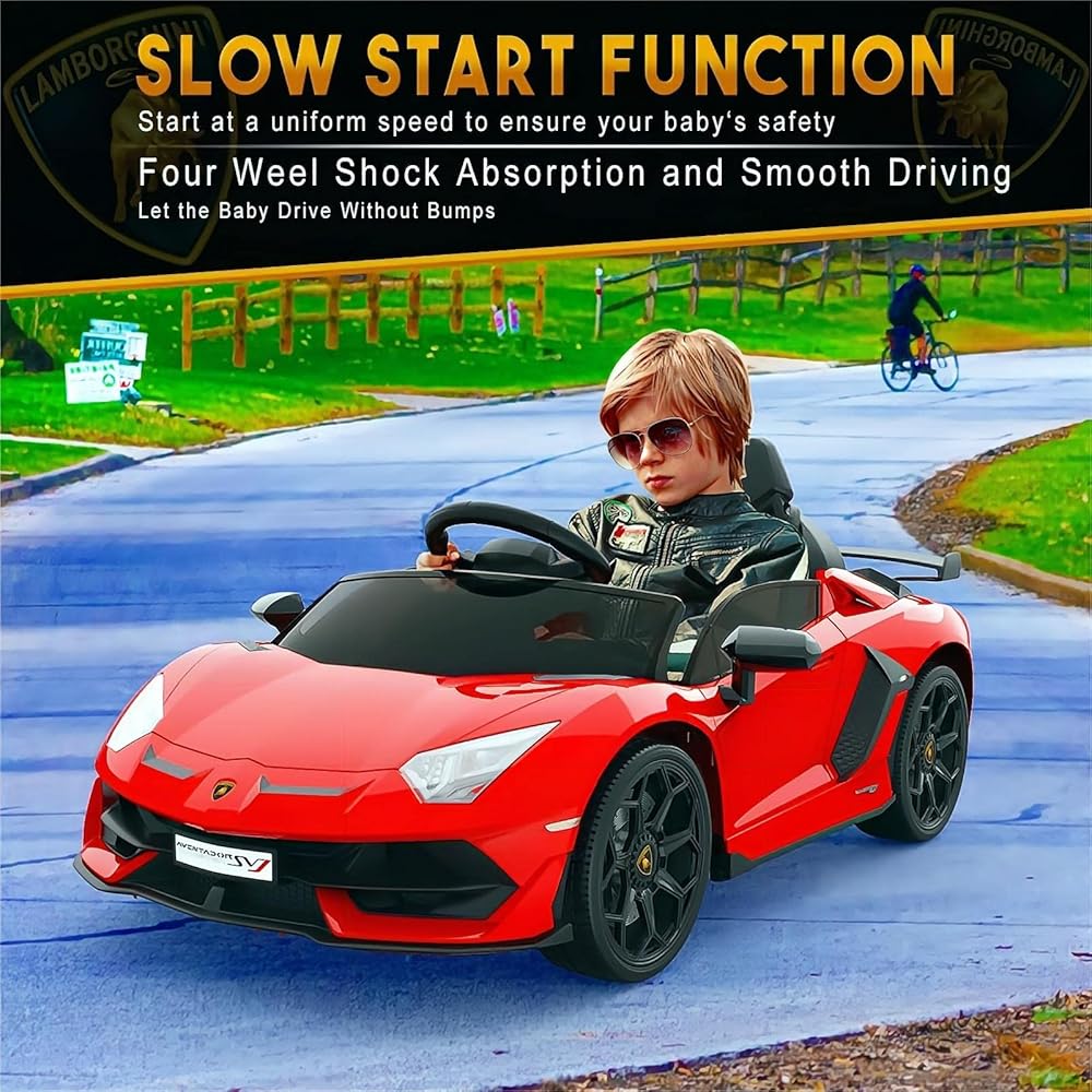[لامبورغيني مرخصة] مرخصة رسميًا، تحتوي سيارة لامبورغيني الركوب هذه على مصابيح أمامية LED، وأصوات بوق ومحرك، وأبواب تعمل بالطاقة الهيدروليكية تتأرجح تمامًا مثل سيارة لامبورغيني الحقيقية. وقت شحن البطارية هو 8-12 ساعة.