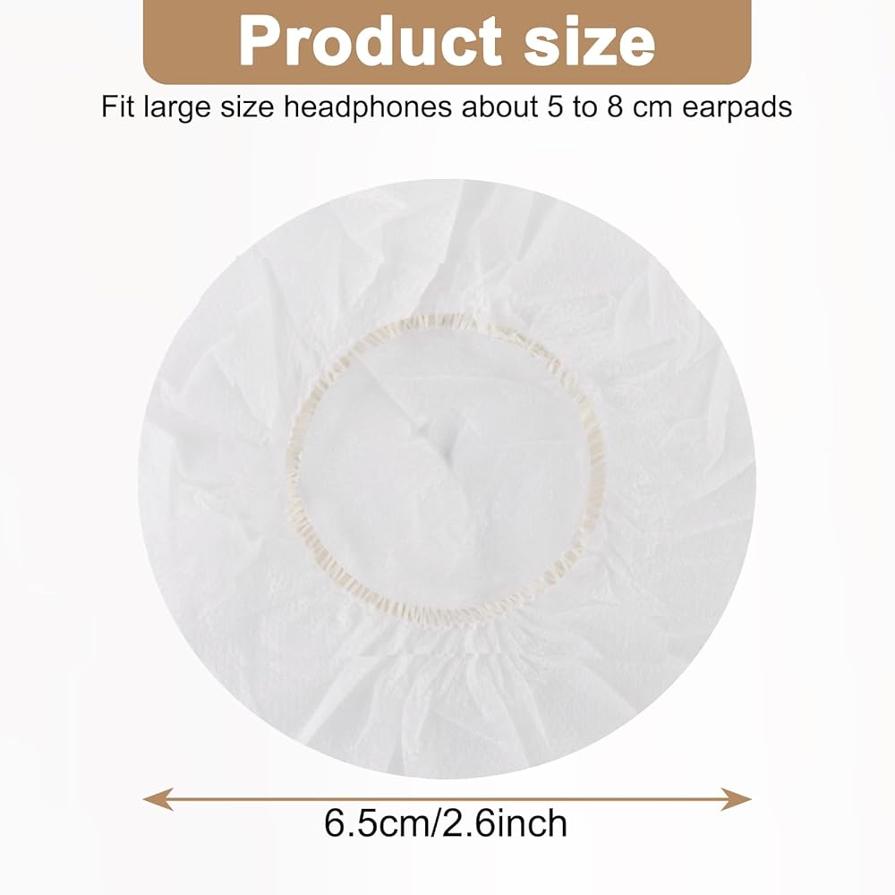 100 قطعة من أغطية الأذن لسماعات الرأس للاستعمال مرة واحدة، أغطية وسائد أذن صحية غير منسوجة قابلة للتمدد، أغطية لأغطية الأذن تناسب معظم سماعات الأذن (6.5 سم/2.56 بوصة (أبيض))