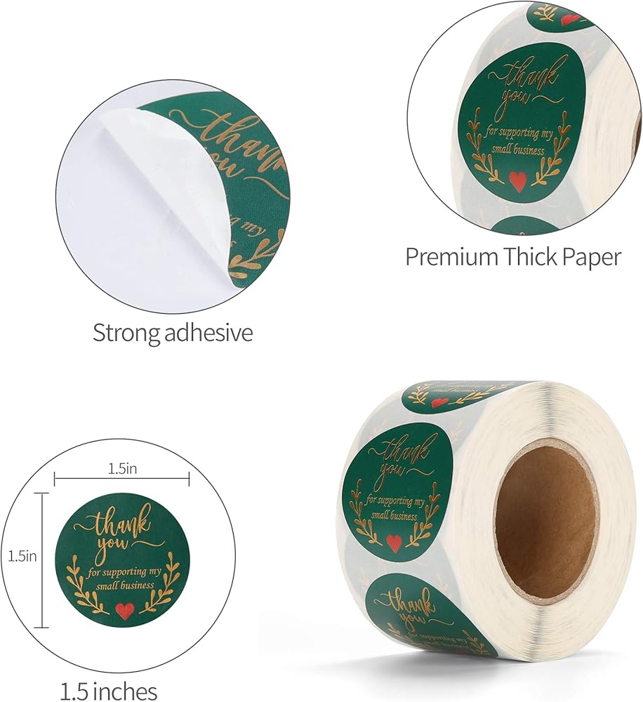 ❣الجودة - 500 ملصق للفة واحدة، بقطر 1.5 سم، مثالية للاستخدام على حقائب العمل والعبوات وحقائب الهدايا والمزيد. تأتي مع صندوق قوي للحفاظ على شكلها.