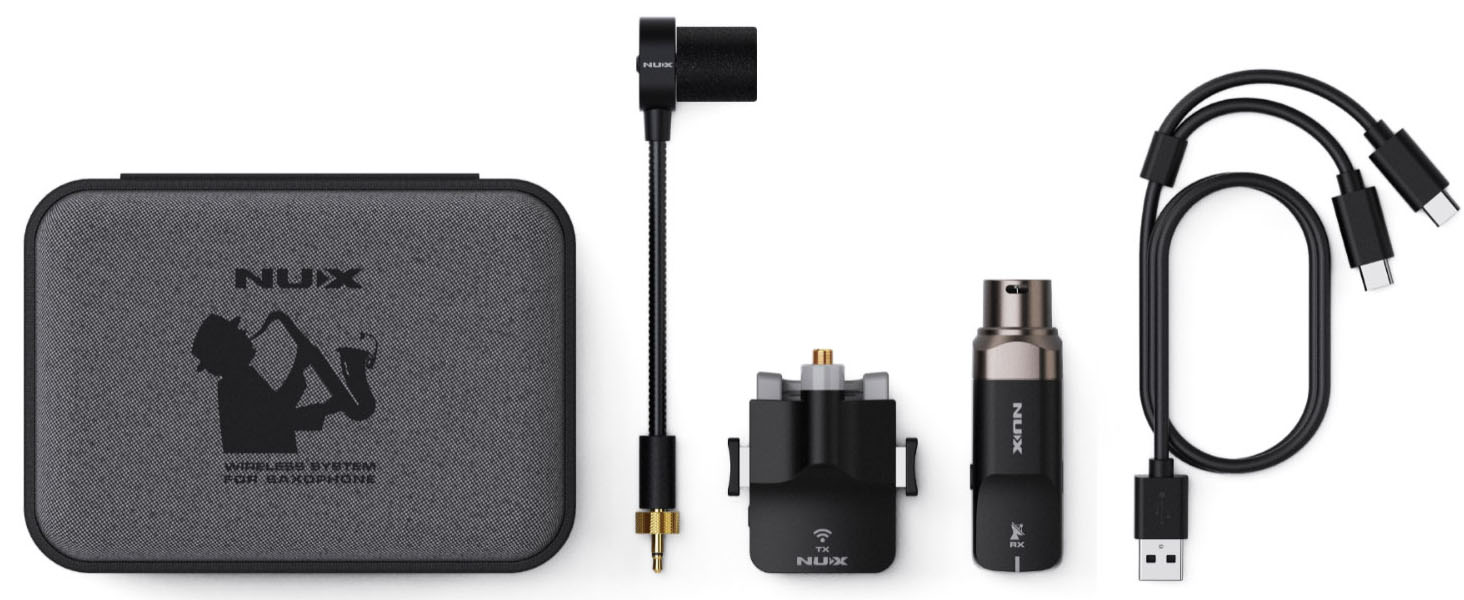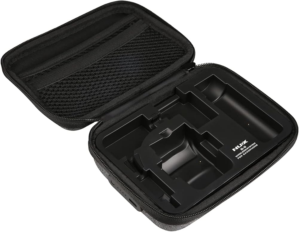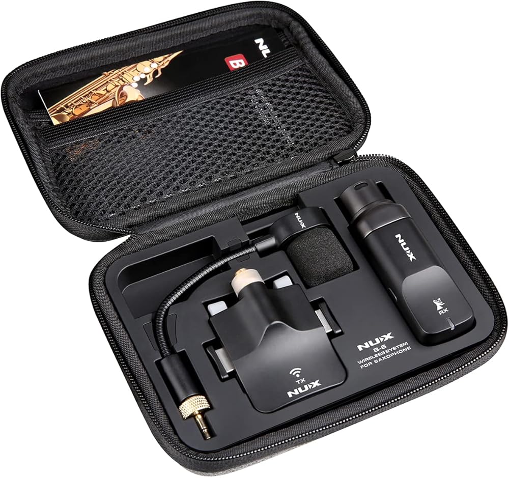 ان واي اكس نظام ساكسفون لاسلكي B-6 مع علبة شحن، نطاق تشغيل 20 متر، صوت عالي الدقة 24 بت/44.1 كيلو هرتز، ميكروفون ساكسفون لاسلكي 2.4GHz