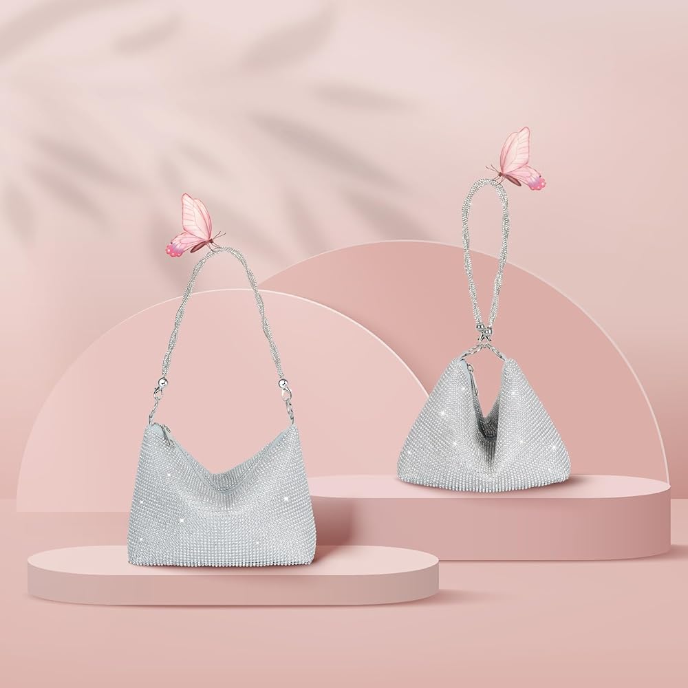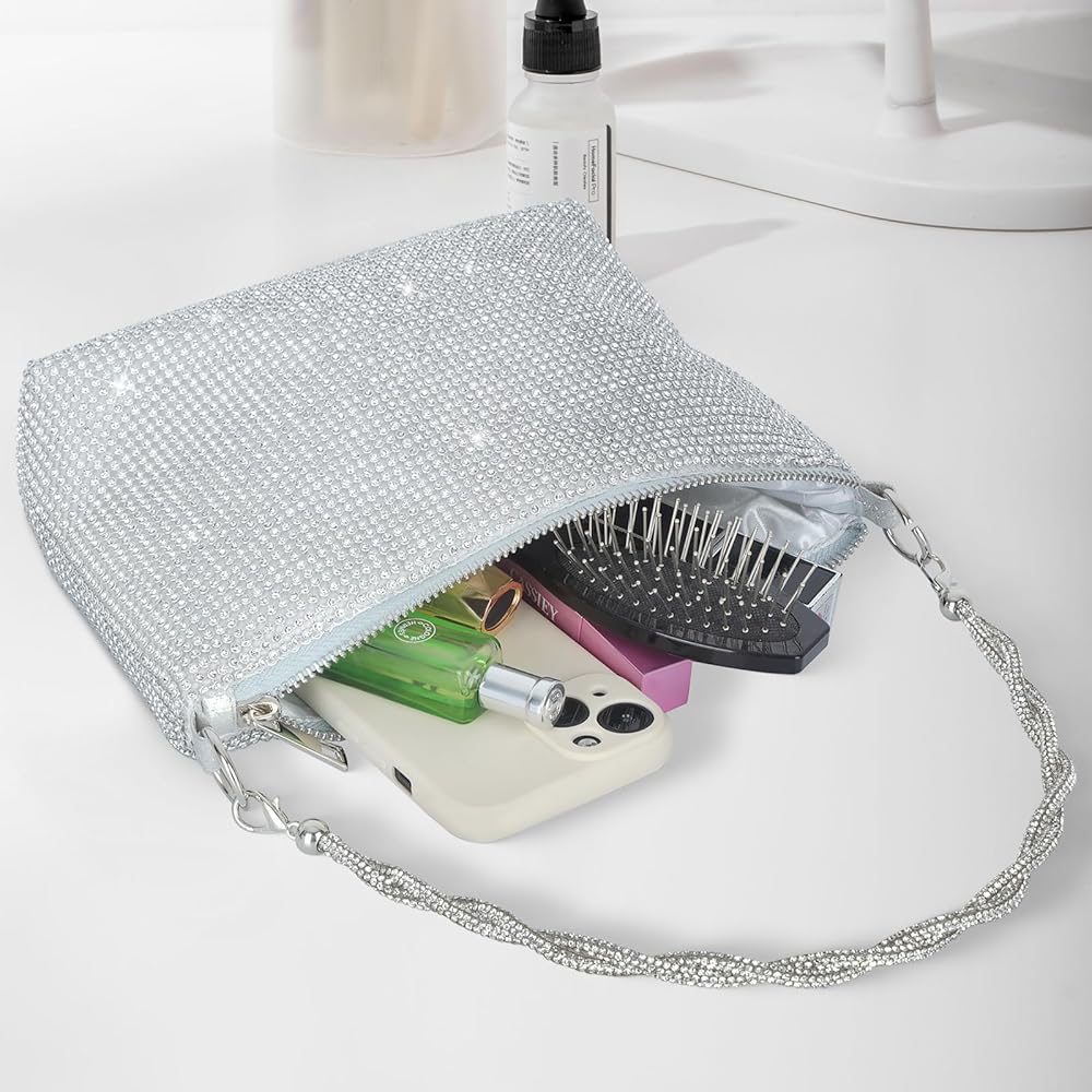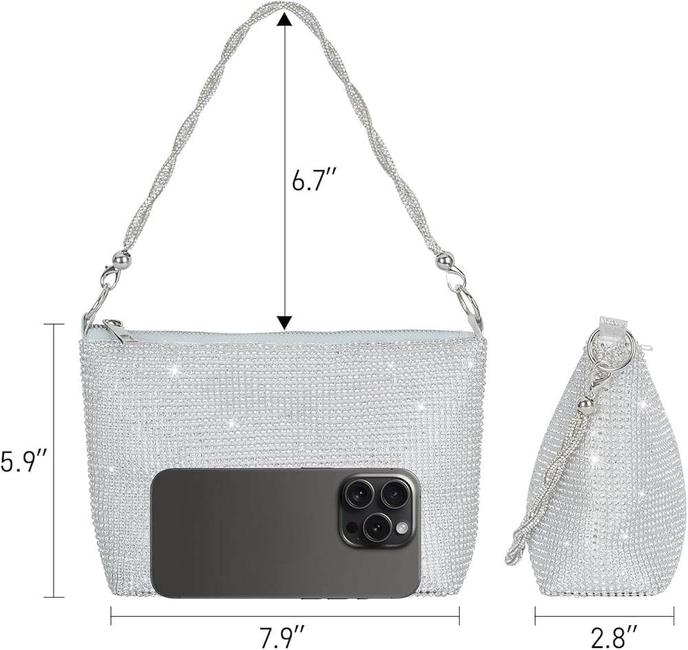 ☑️: الماس المتلألئ: ارفعي مظهرك المسائي مع البريق الساحر للألماس المائي الذي يزين هذه الحقيبة، مما يضيف لمسة من السحر إلى أي مناسبة.